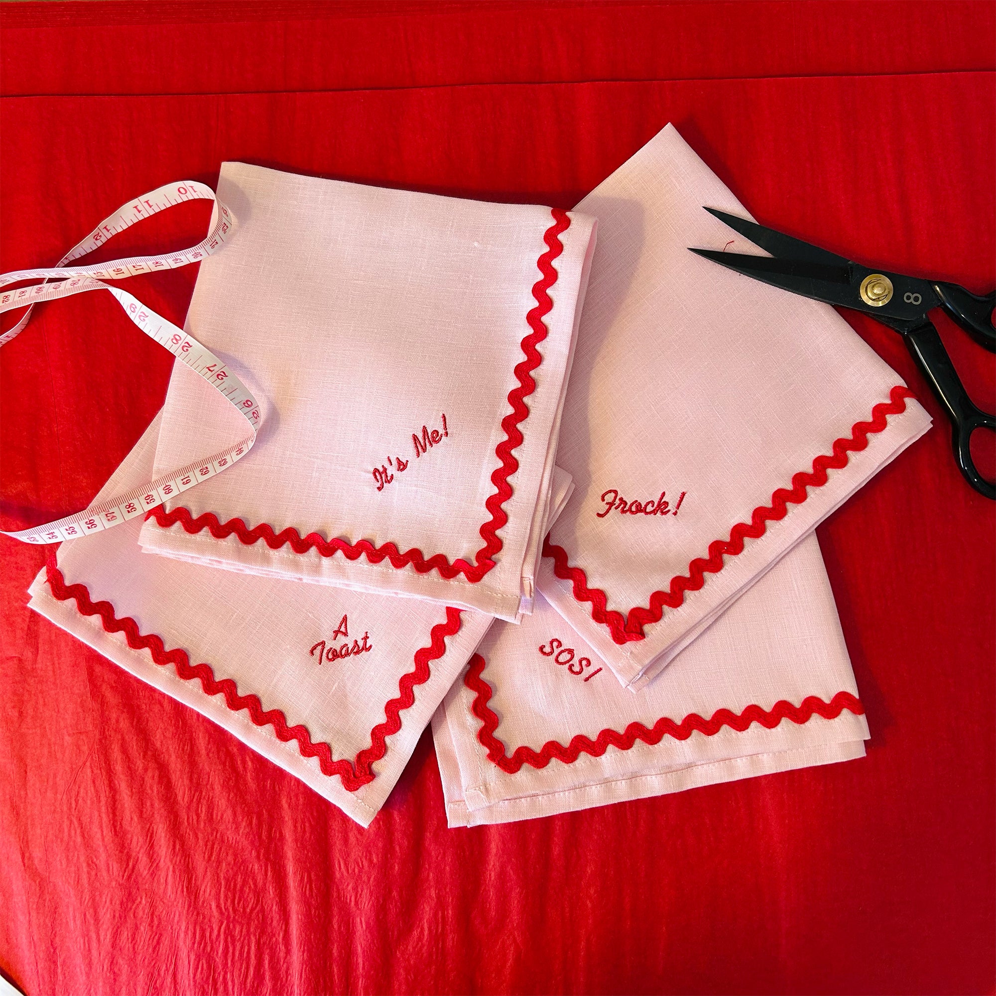 Add your own..Ric Rac Red & Pink | Personalised Napkin