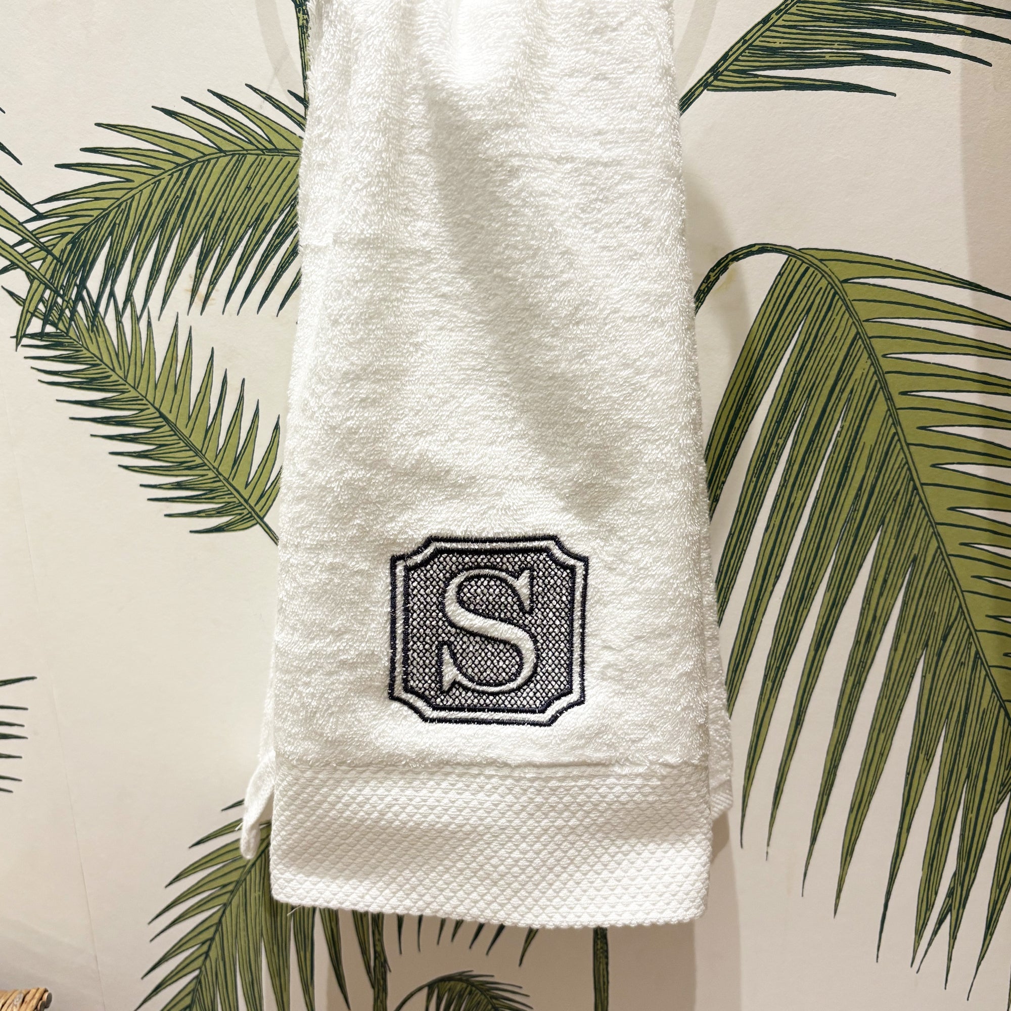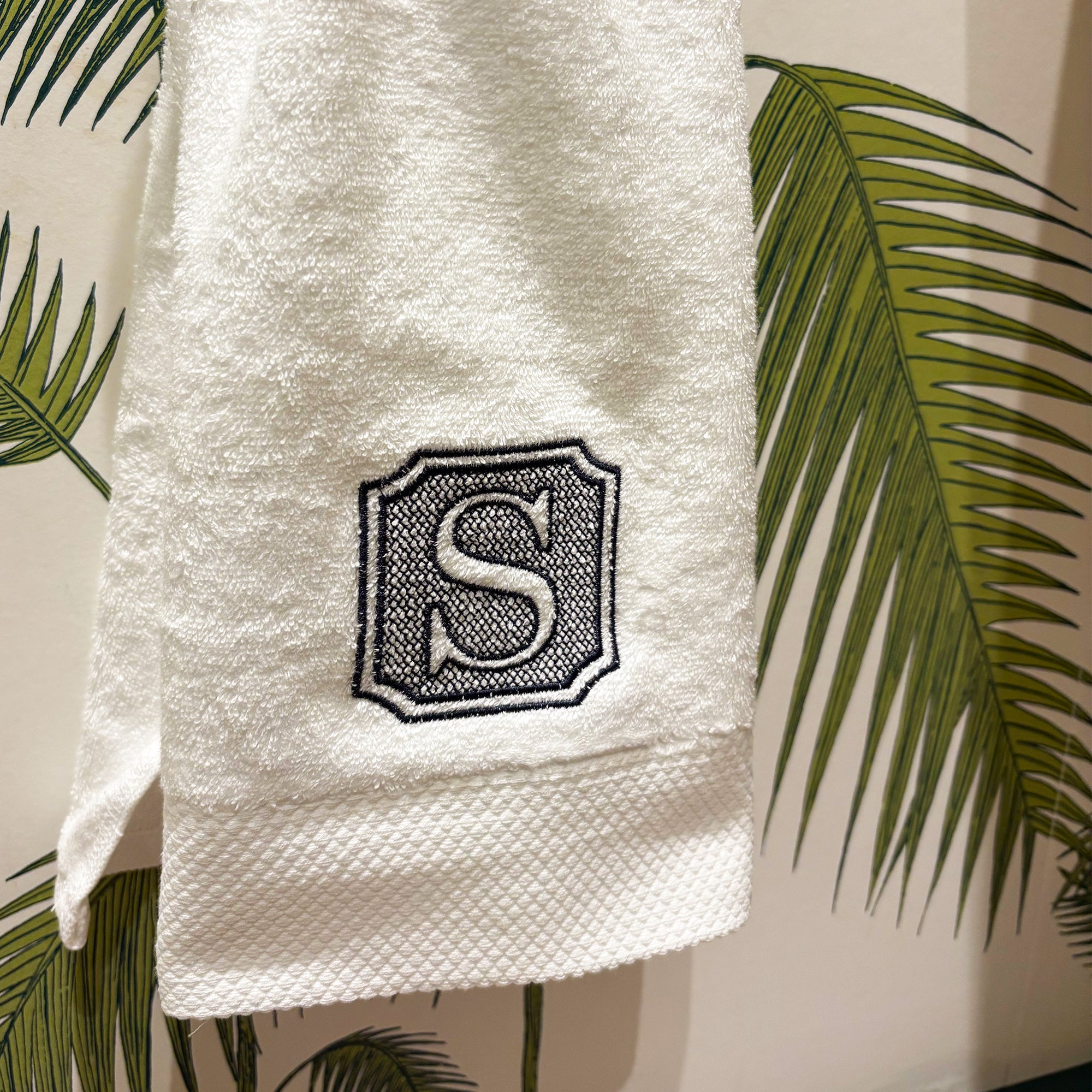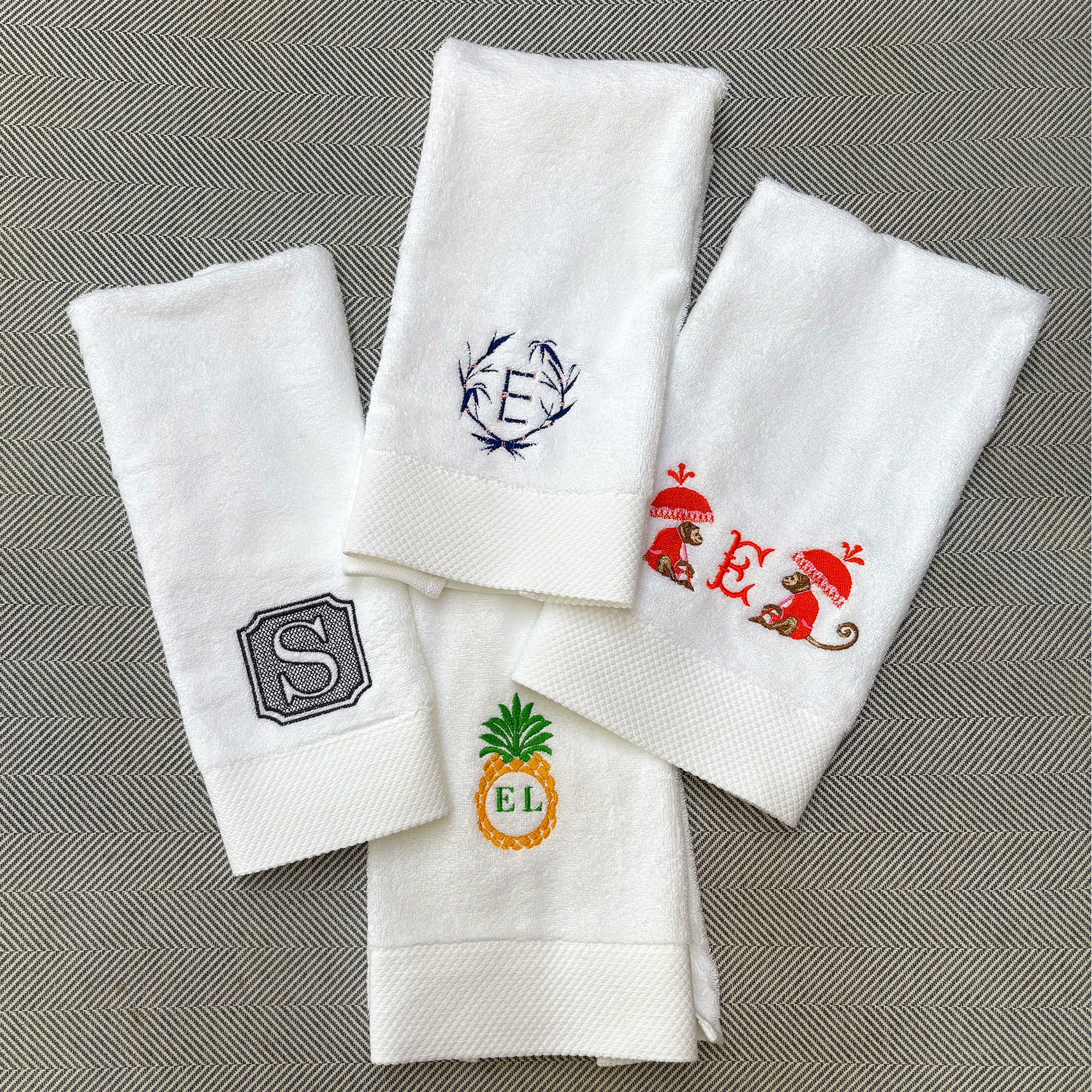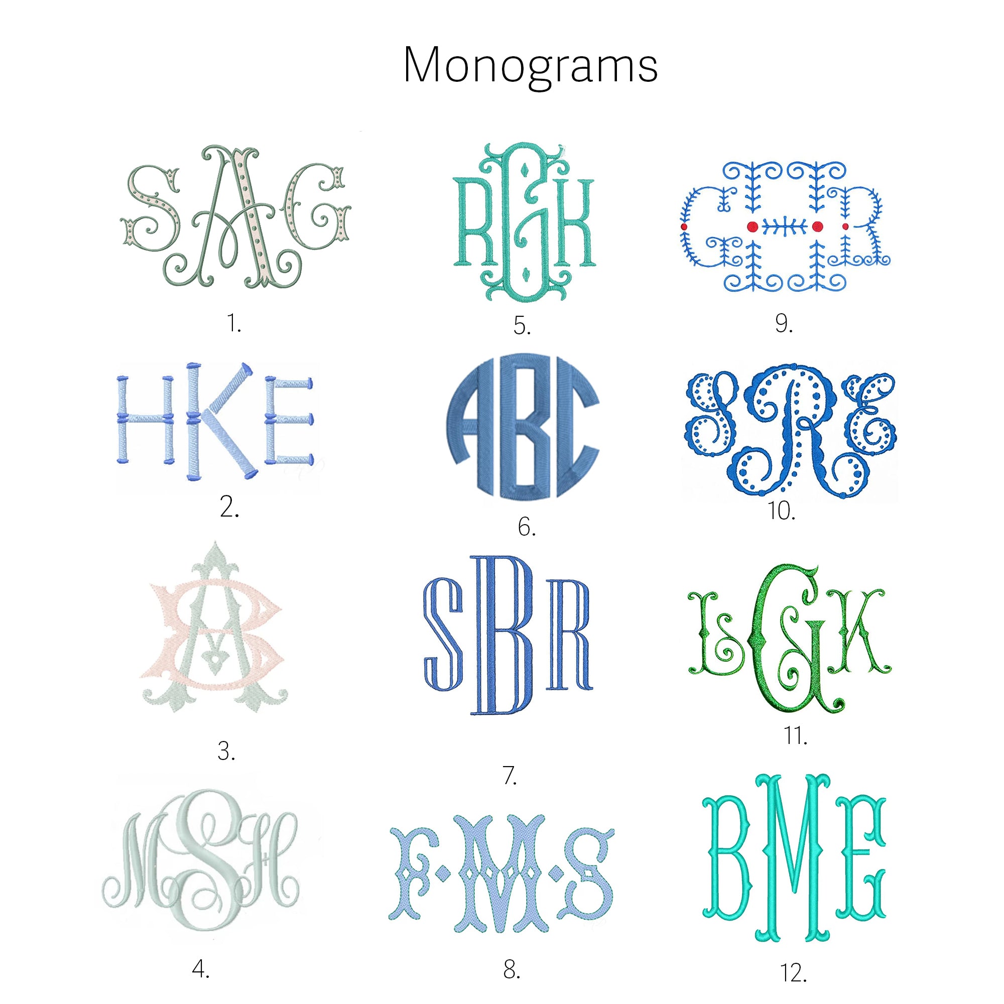 The embroidered design on the photo is Two Monogrammed Letters embroidered on the corner, we can add more and change font.