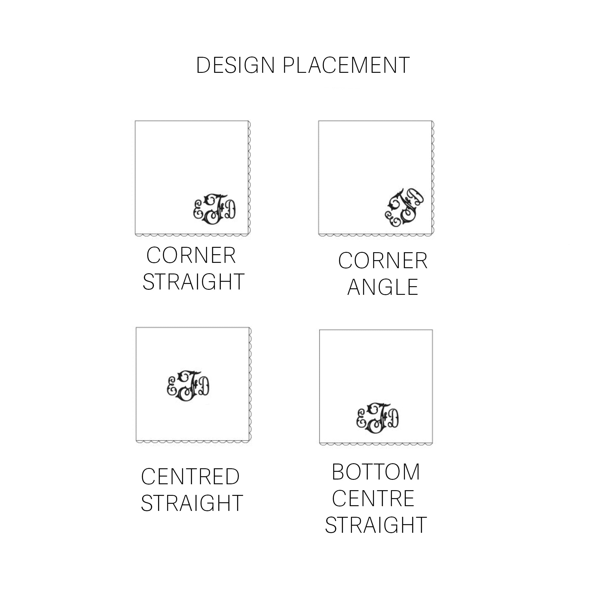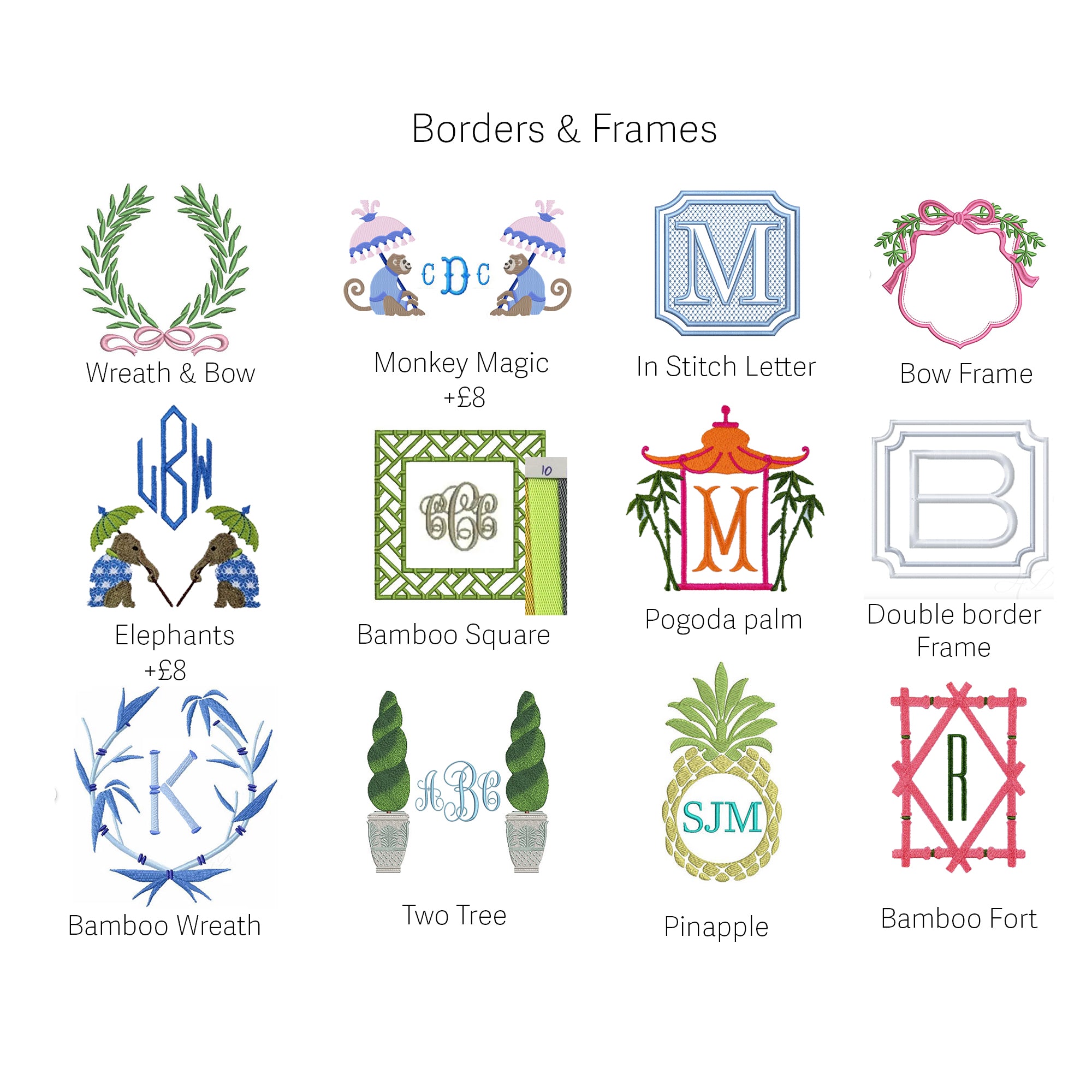 The embroidered design on the photo is Two Monogrammed Letters embroidered on the corner, we can add more and change font.