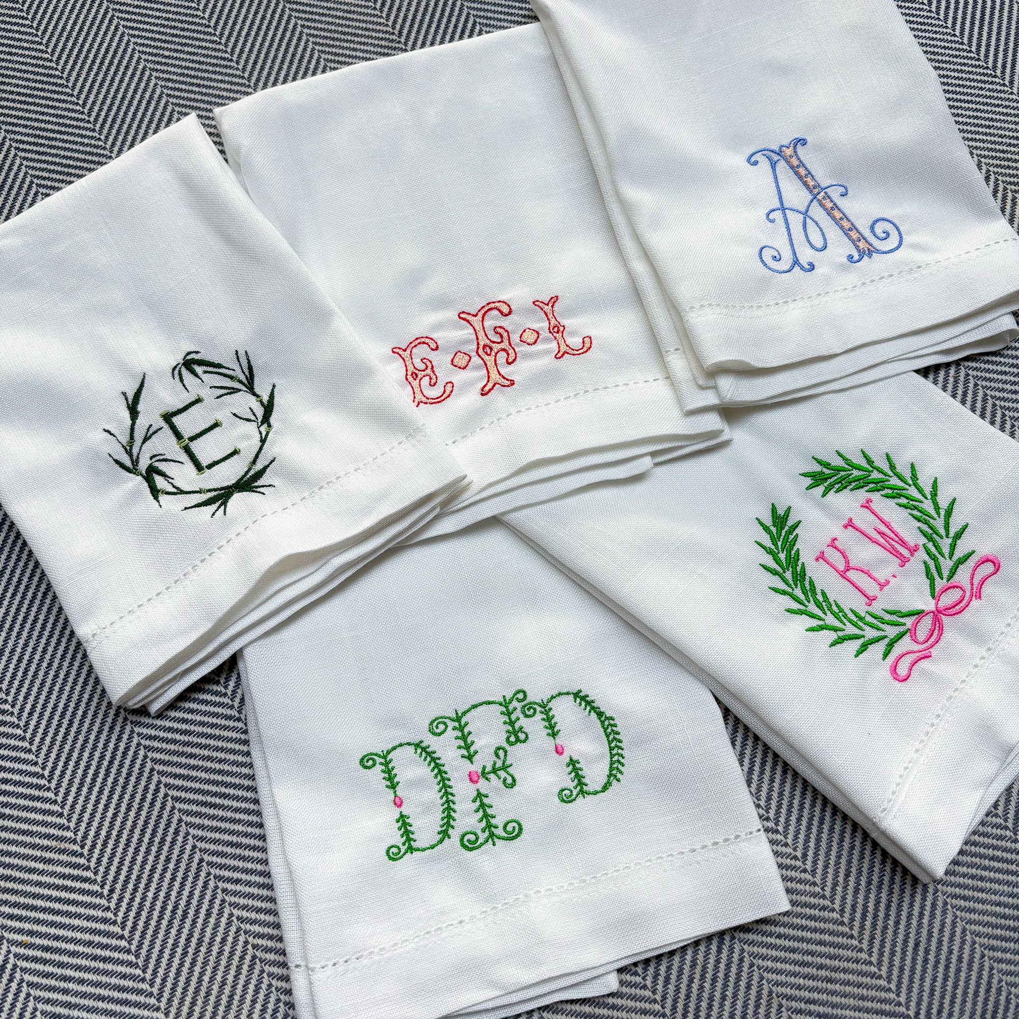 Bespoke Monogram Wedding, Housewarming Napkins, Set 4, Personalised Linen Anniversary