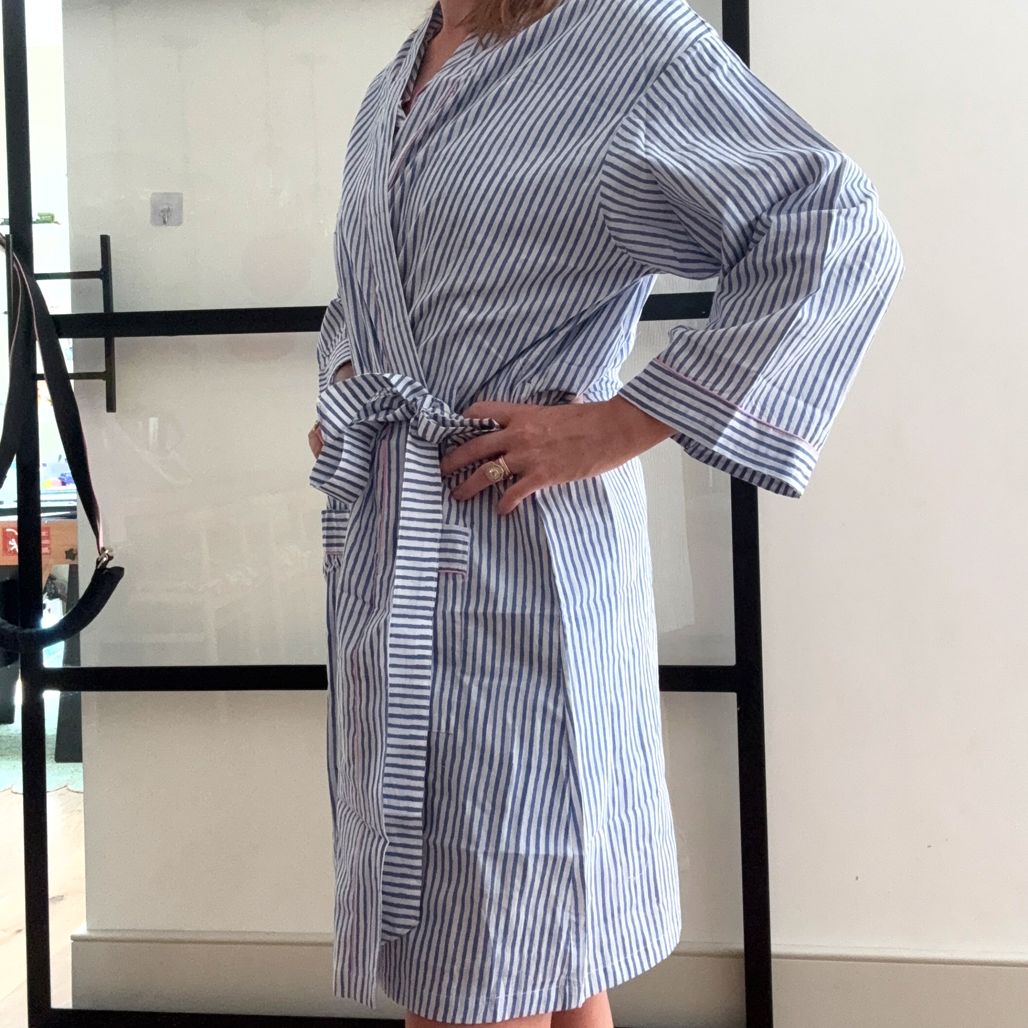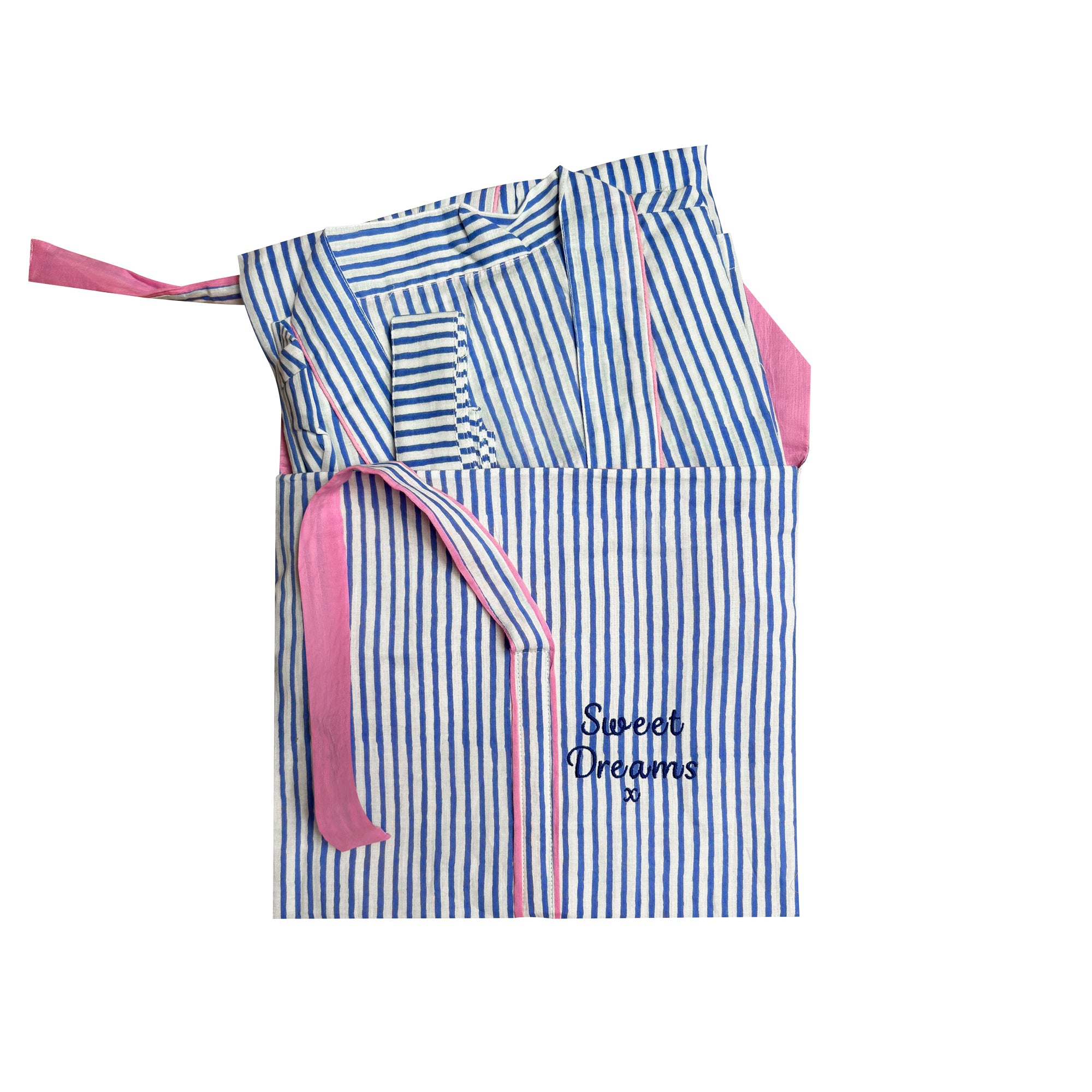Blue Stripe Kimono Robe Bridesmaid Stripe Pyjamas Set, Stripe gown Bridesmaid, Bridesmaid PJs Cotton,