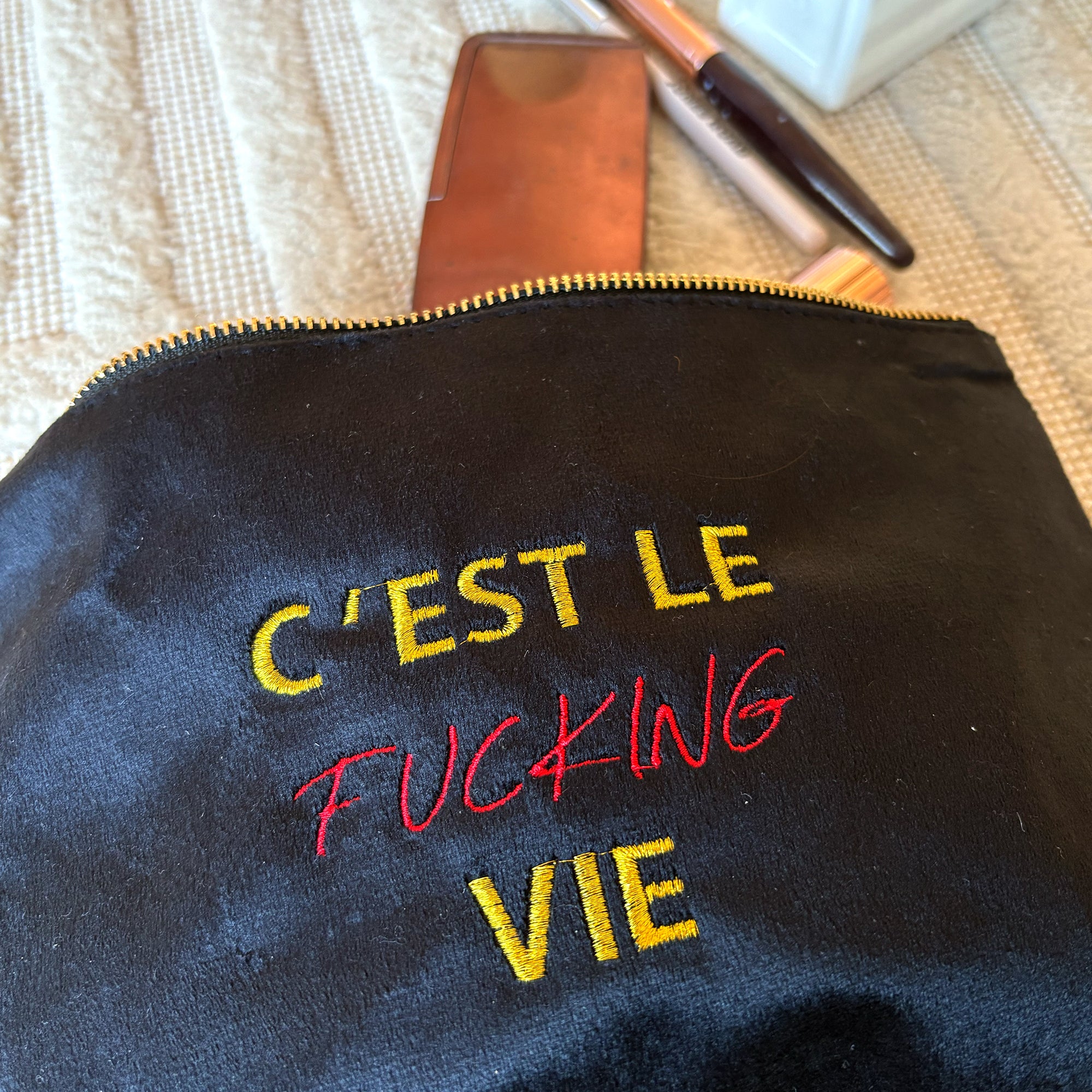 Give her a reason to smile with our C'est Le Vie cosmetic Bag! This embroidered pouch is perfect for storing her favorite essentials and every day must-haves in style. Crafted with gold embroidery and personalized initials that can be added on the other side, it's the ideal gift for her birthday, bridal shower, or any special occasion.