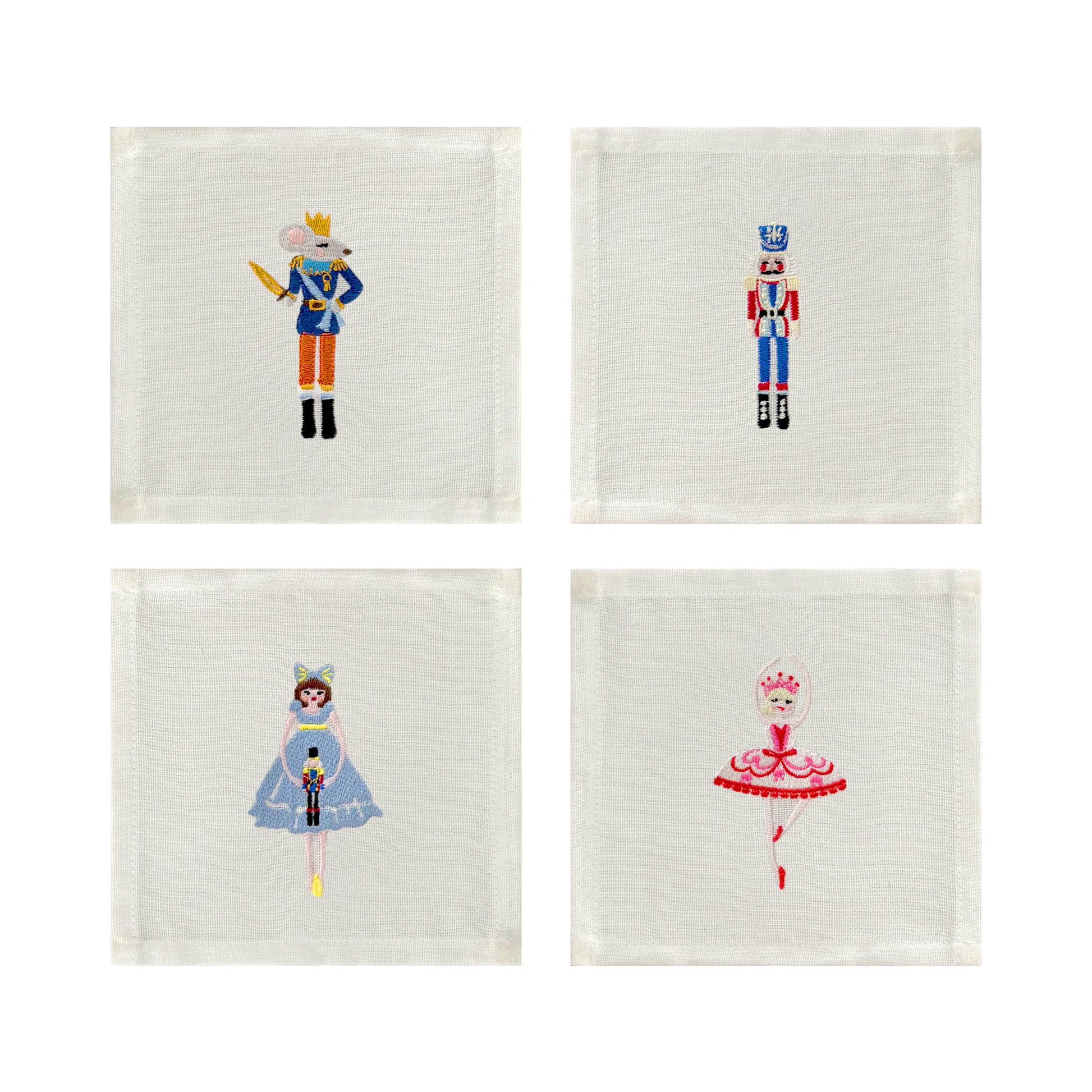 These one-of-a-kind cocktail napkins are the perfect hostess or Christmas gift, adding a dash of charm to your celebrations. Featuring detailed nutcracker embroidery, they sprinkle a little holiday magic on your table, making every gathering unforgettable. Brighten up your festive season with our stylish party linen napkins and turn every meal into a joyful event. Give your holiday decor a playful upgrade and let your table shine with these eye-catching festive cocktail napkins. Enjoy the perfect mix of fun and function for your Christmas festivities.