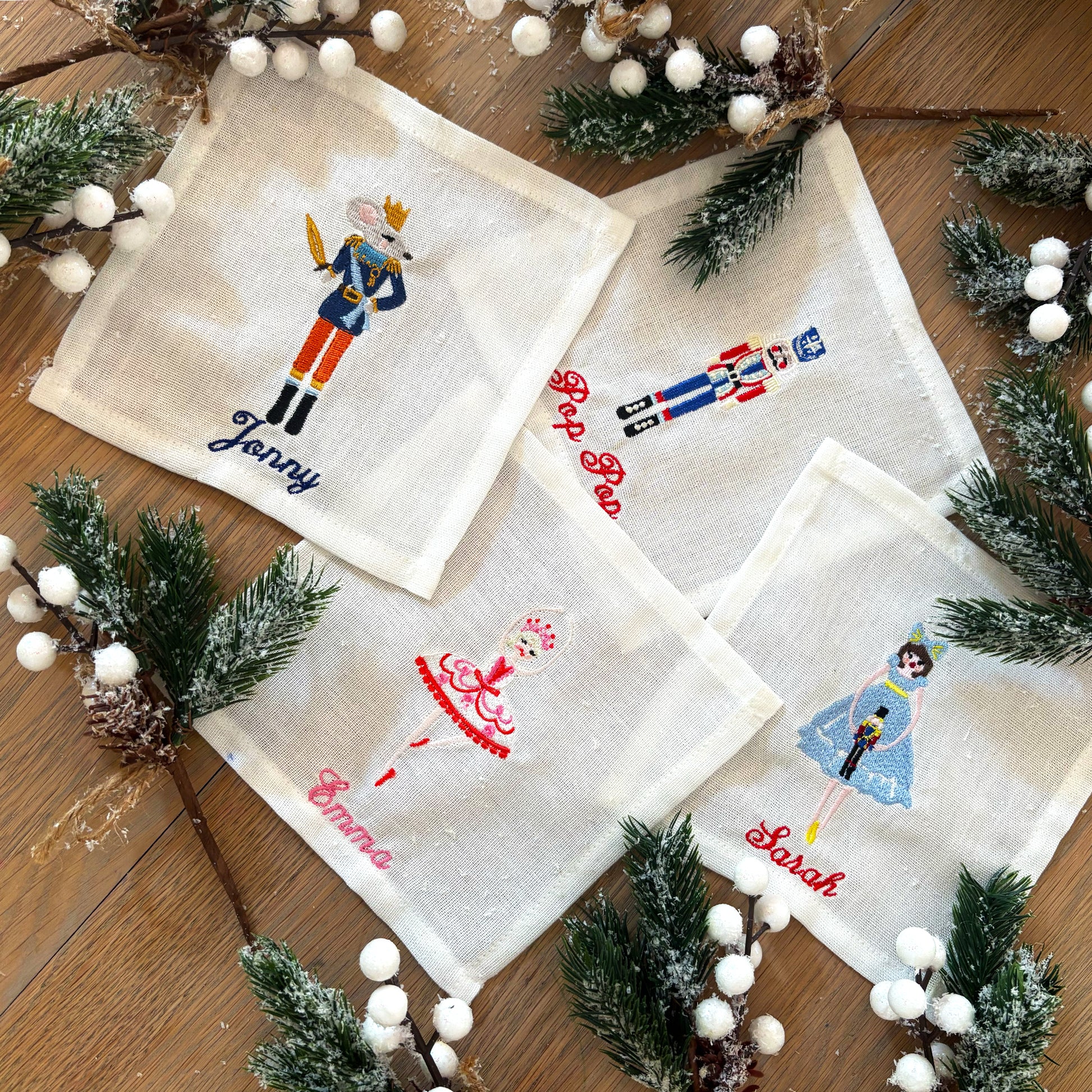 Add a festive twist with our Nutcracker Theme Christmas napkins, each lovingly embroidered in our London studio.