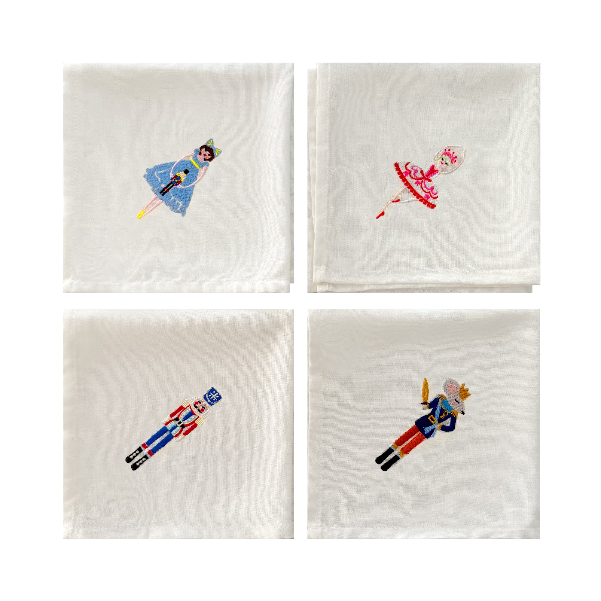 Christmas Nutcracker Embroidered Napkins | Set 4
