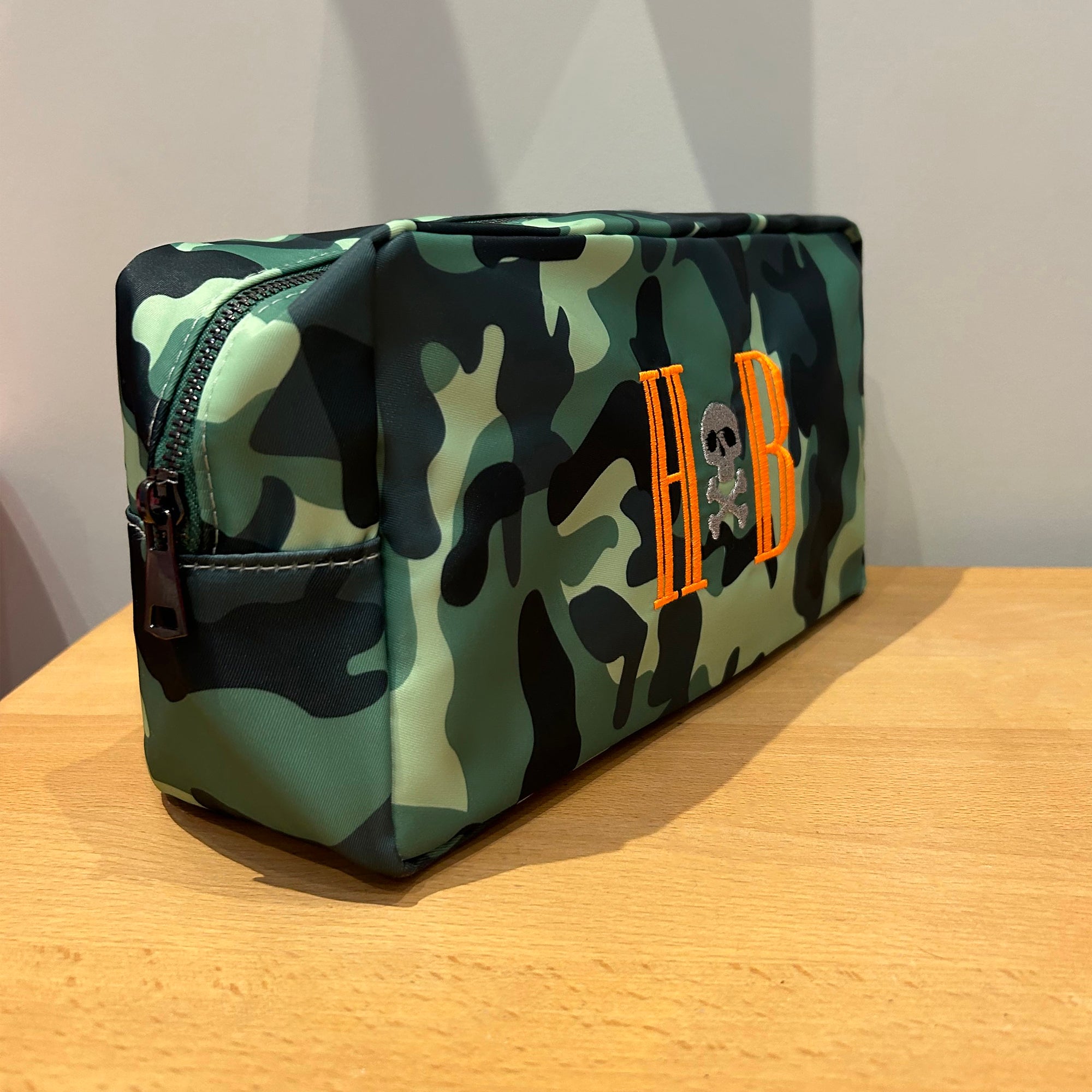 These are the perfect travel companion. These come in three handy sizes, perfect of any of those travel essentials that you need to take with you. Wherever you adventure, these bags will be by your side. They'll hold all of your essentials in style and convenience, so you can focus on the journey ahead. Perfectly finished with heavy gold zips. These some with a classic gold chain stitch font, if you would like to change the colour thread please reach out.