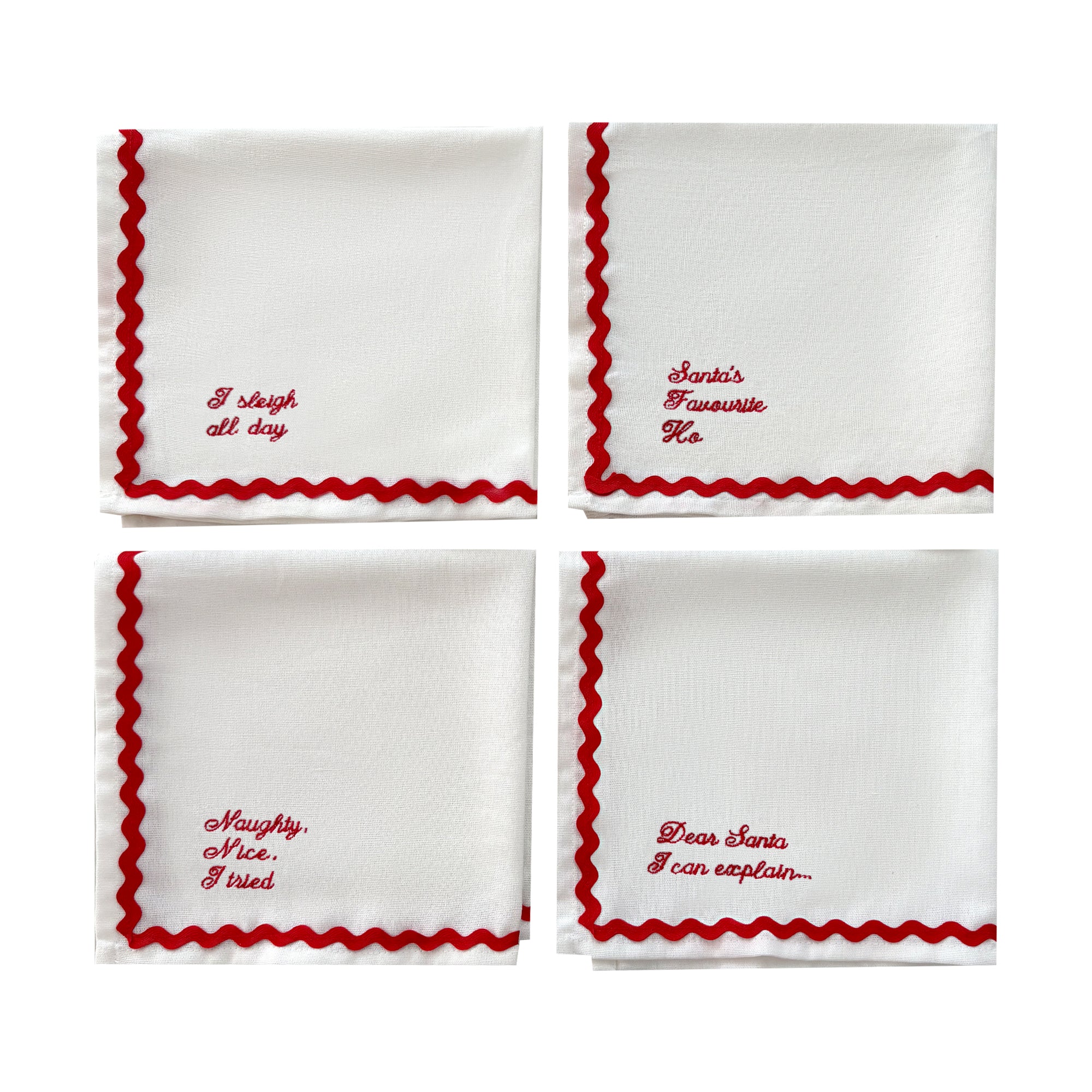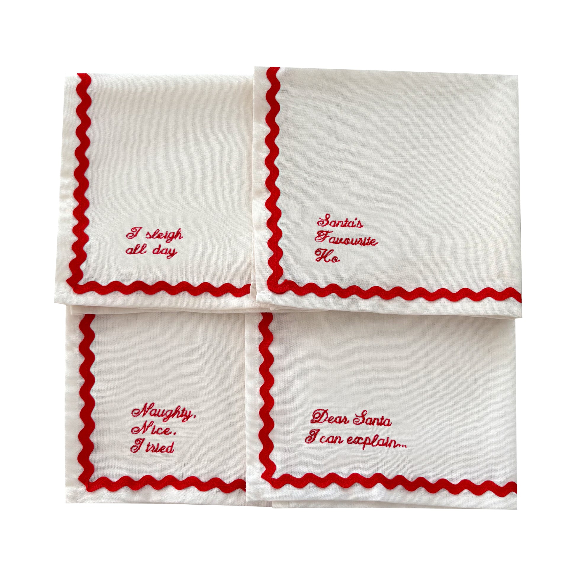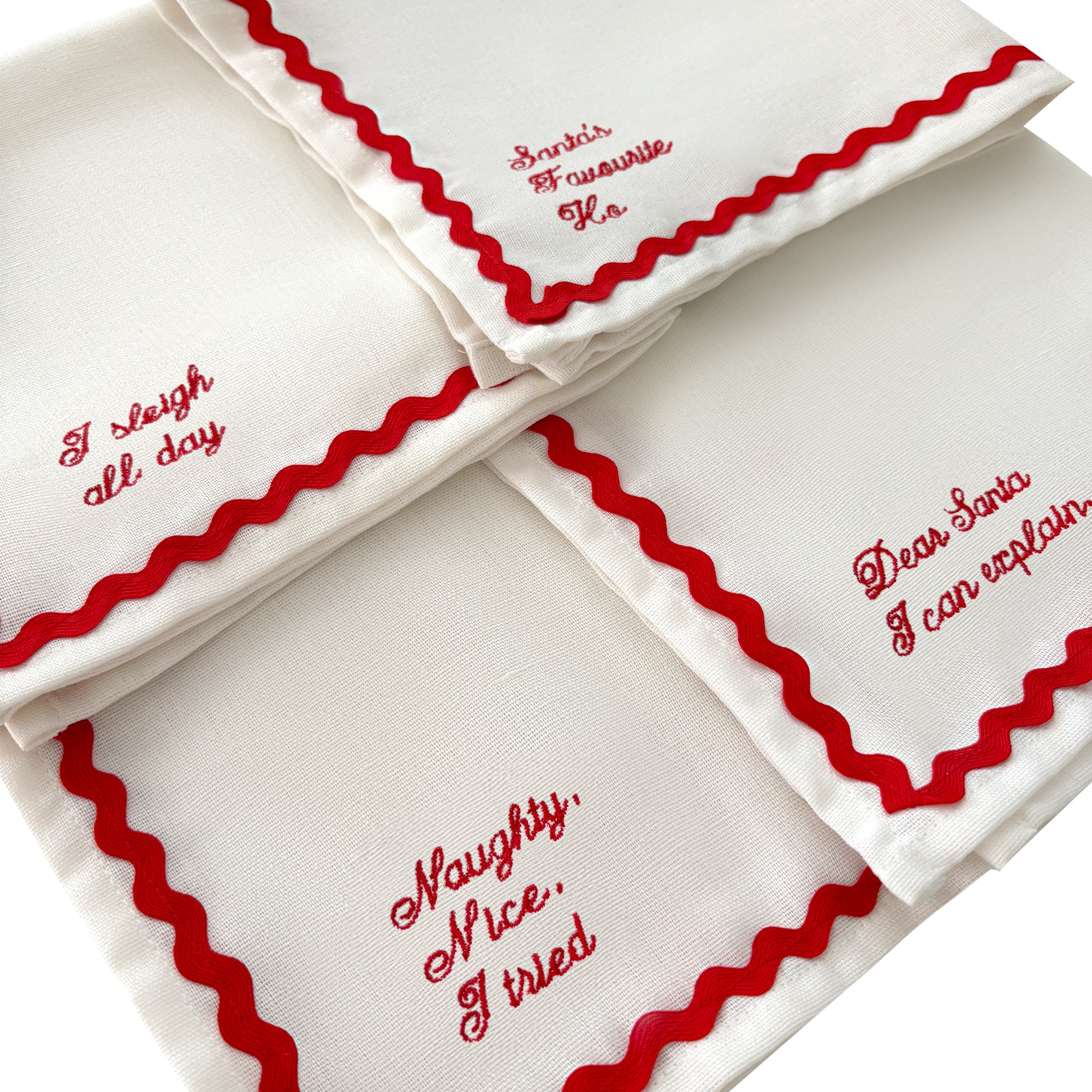 Add a festive twist with our cheeky Christmas napkins, each lovingly embroidered in our London studio.