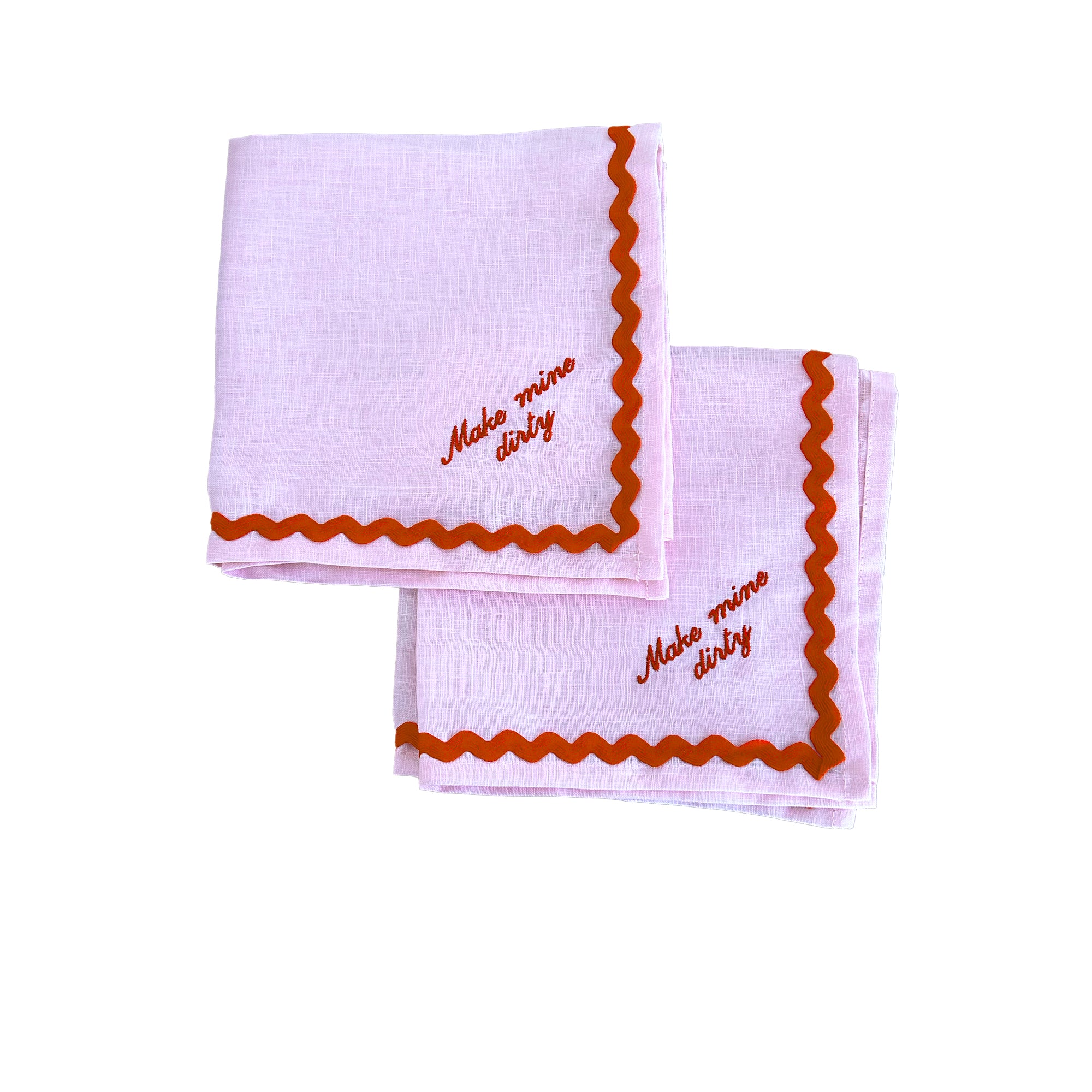 Embroidered Housewarming Linen Napkin Set x2 | Custom 'Make Mine Dirty' Party Decor