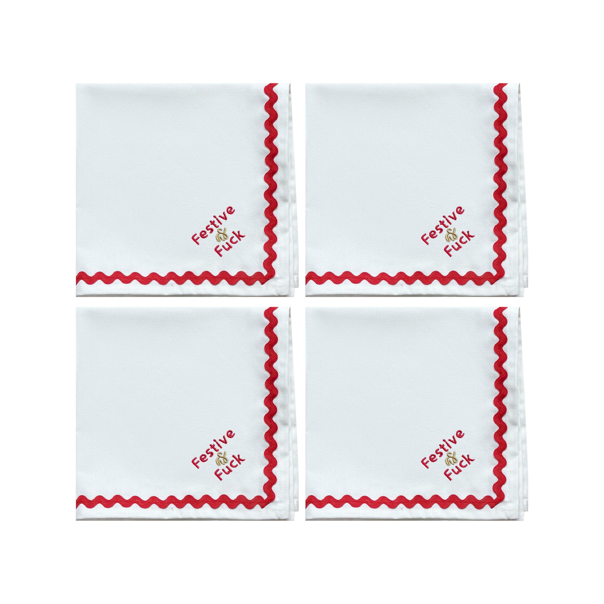Festive as Fuck Embroidered Napkins | Set 4