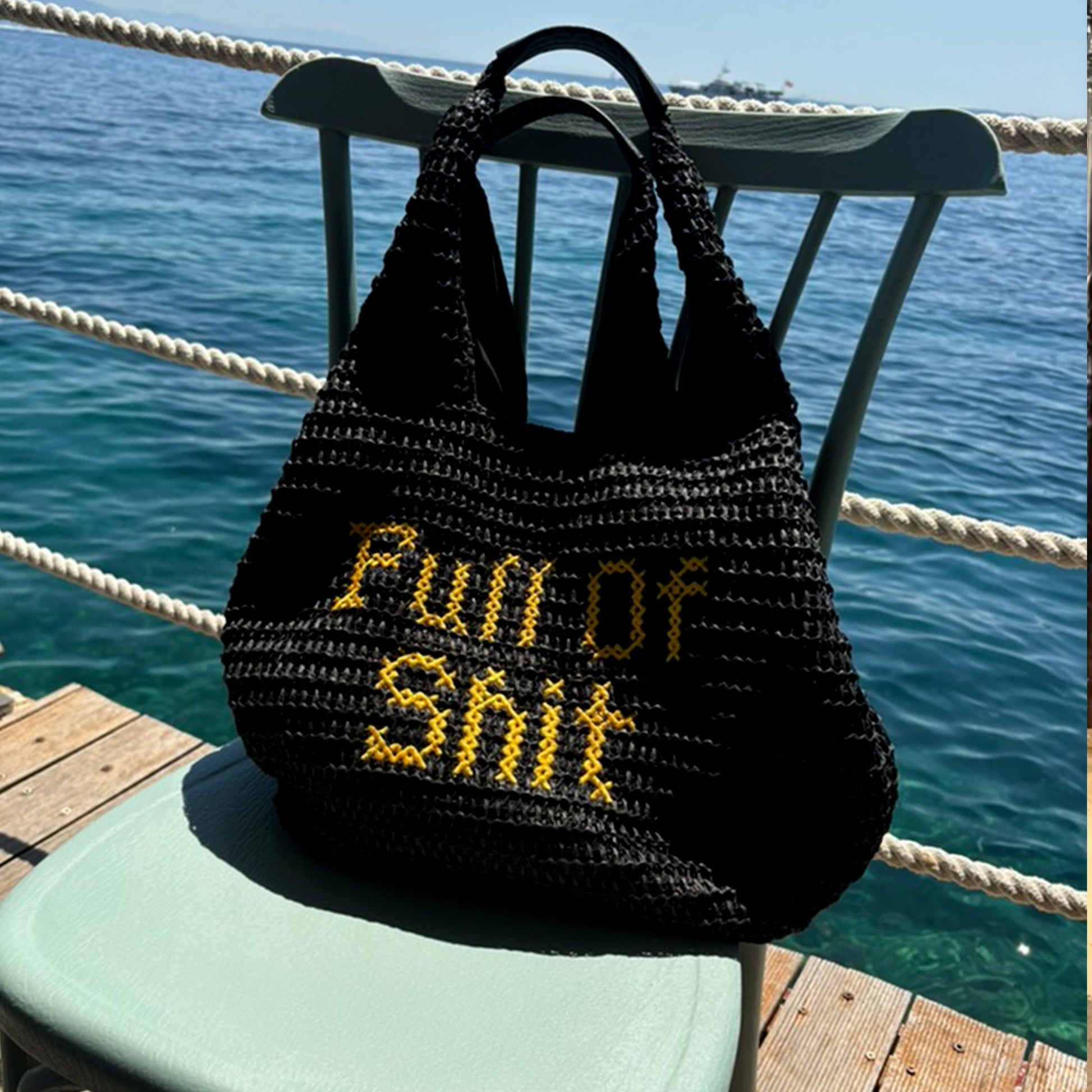Gear up for fun adventures with our Full of Shit oversized Beach Bag! This stylish beach bag is the perfect companion for your beach trips or summer getaways. Ideal for summer parties or beach days, this embroidered tote combines style and functionality. Pack your essentials in style and make a splash with our Embroidered Monogram Tote!"