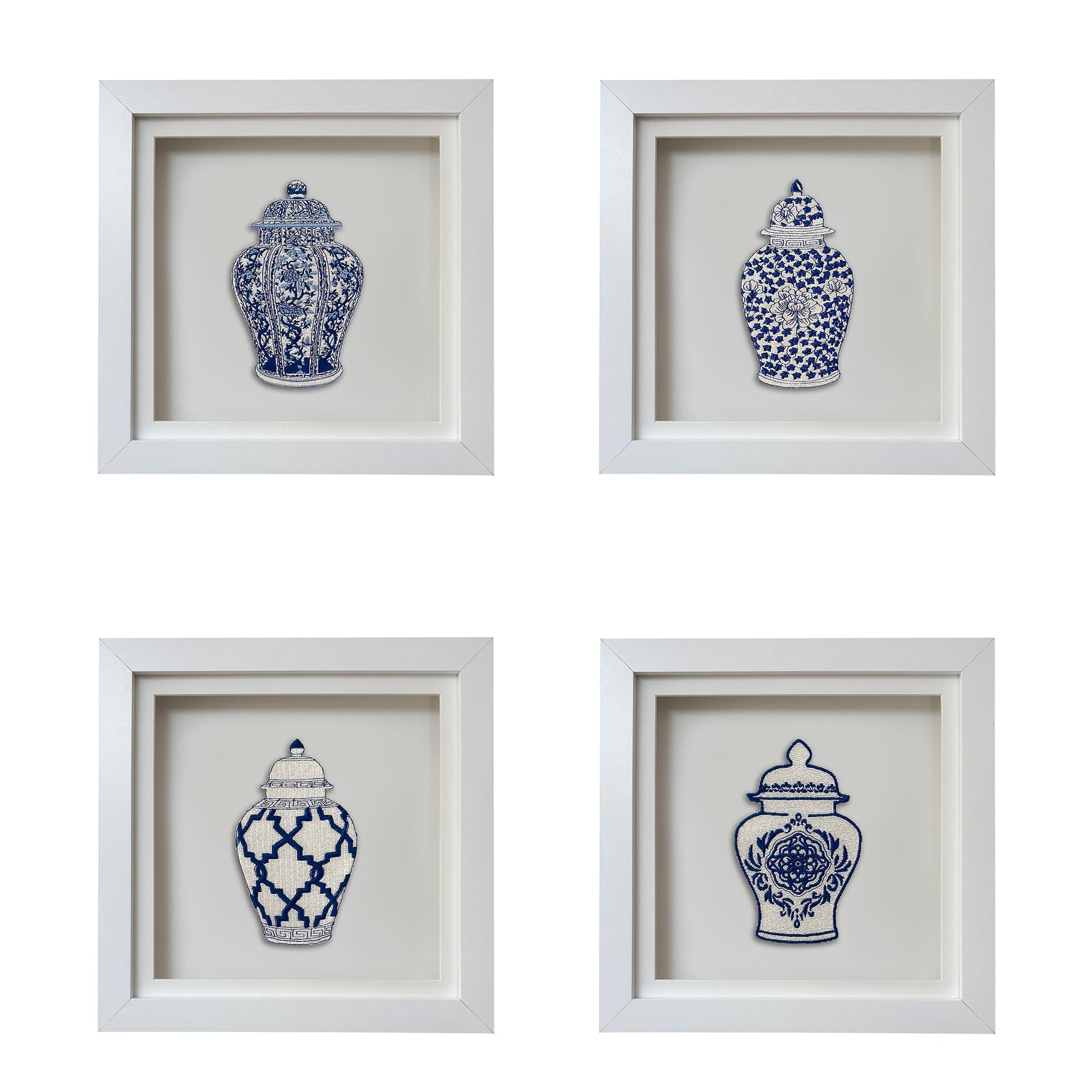 This Embroidered artwork are inspired by beautiful blue china which my grandmother used to collect.