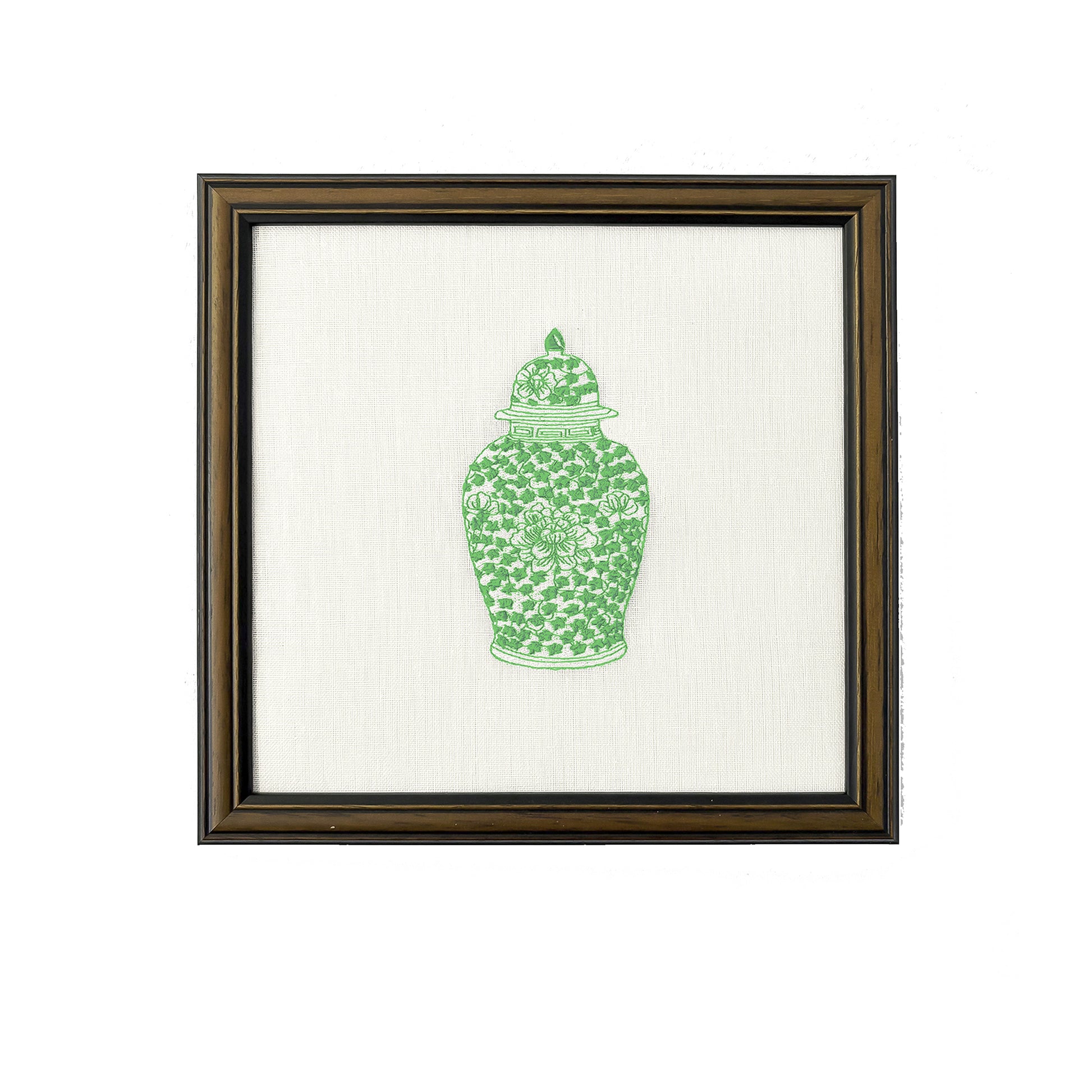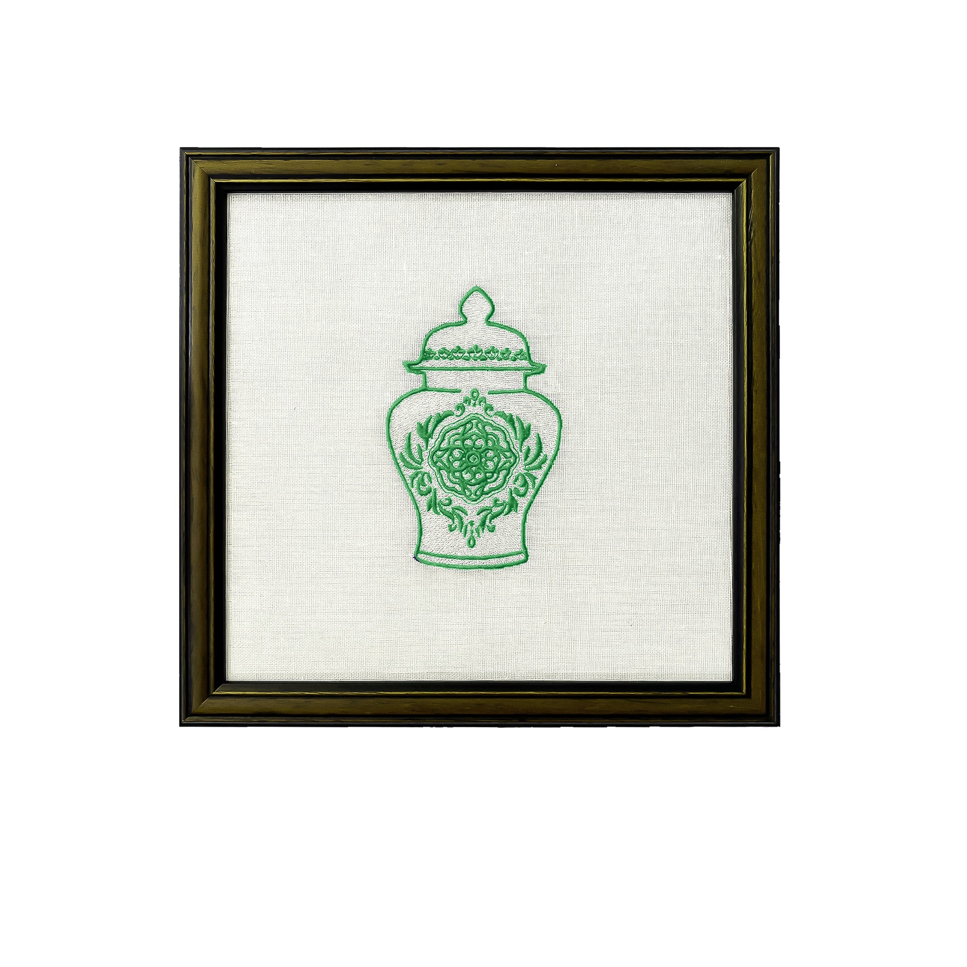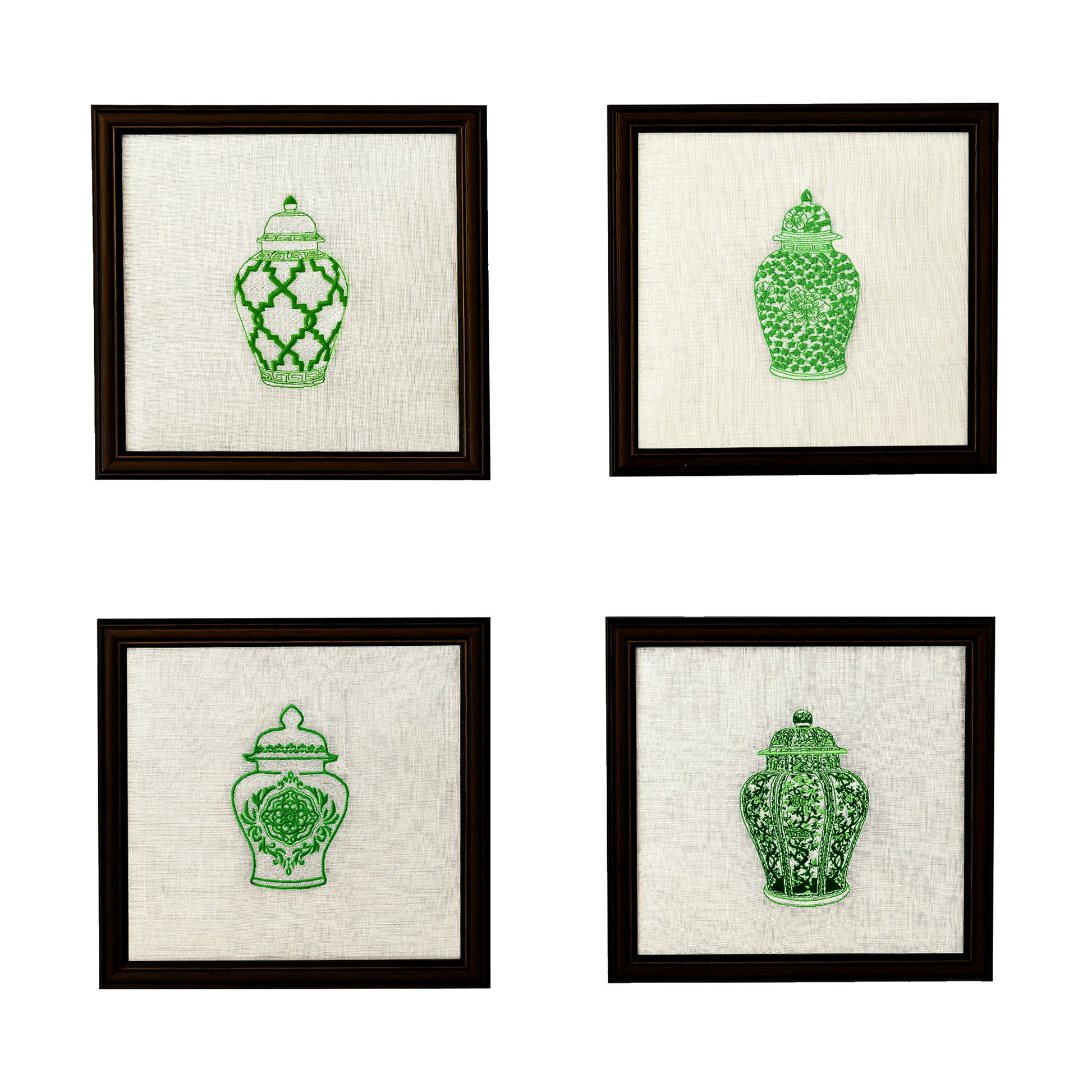 Green Ginger Jars Set of 4 Embroidered Artwork