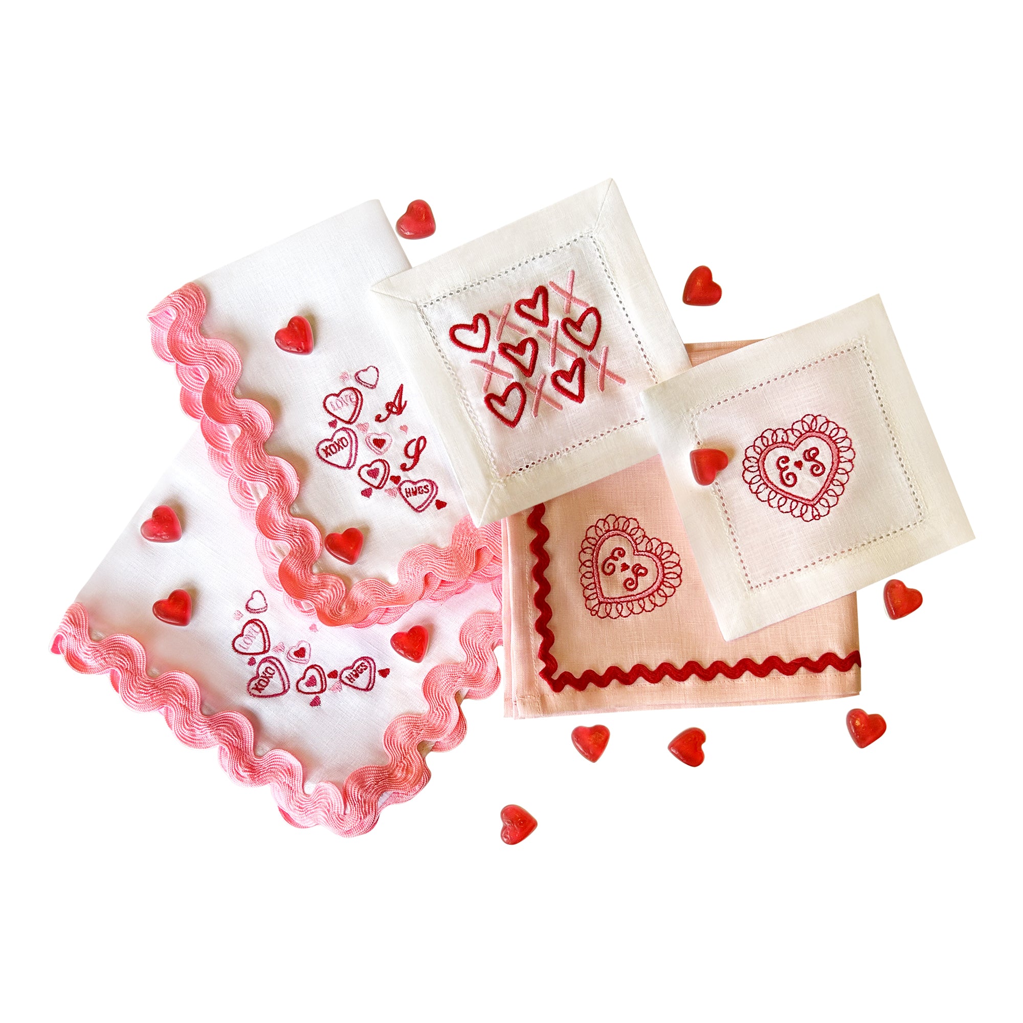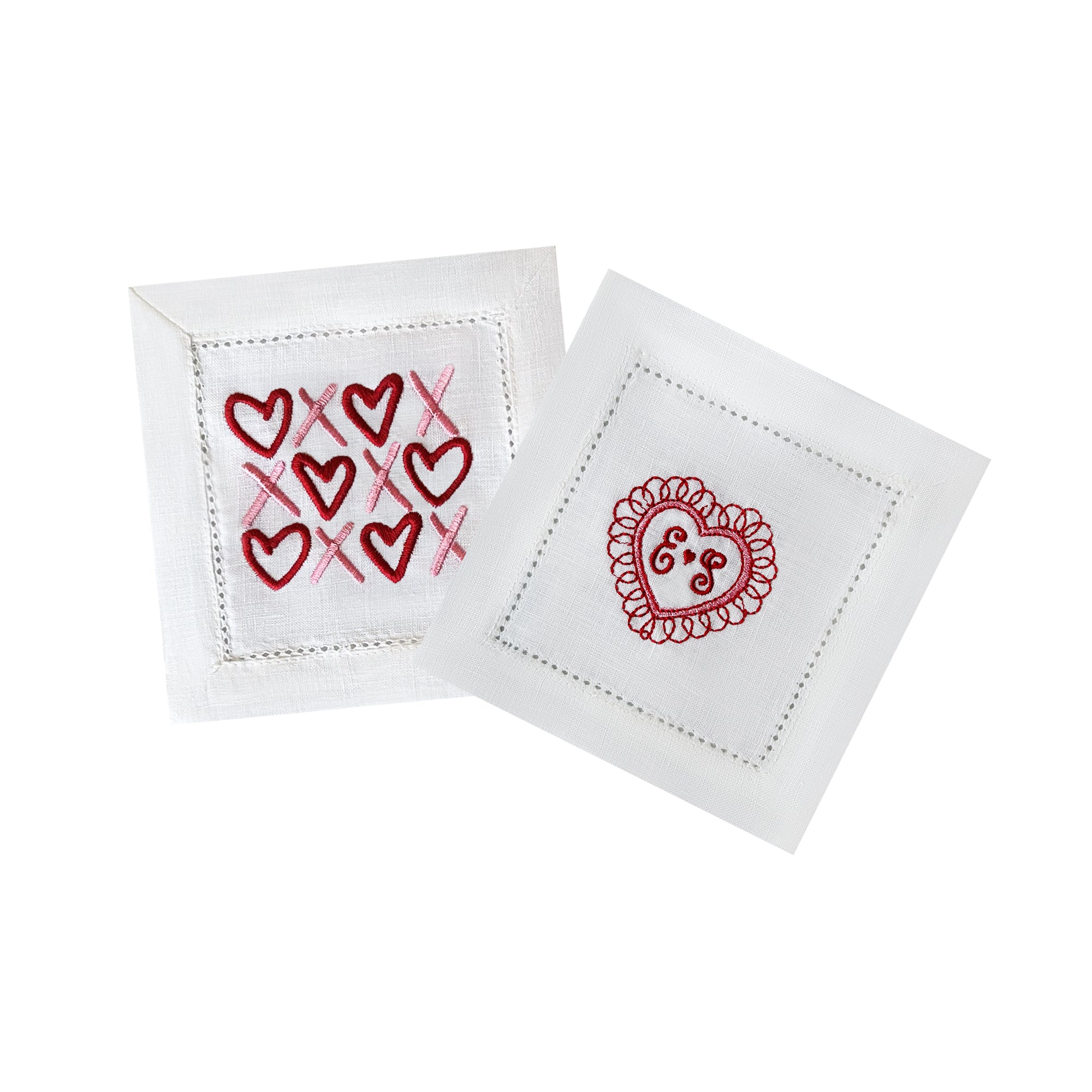Heart Embroidered Cocktail Napkins | Set of 2 designs
