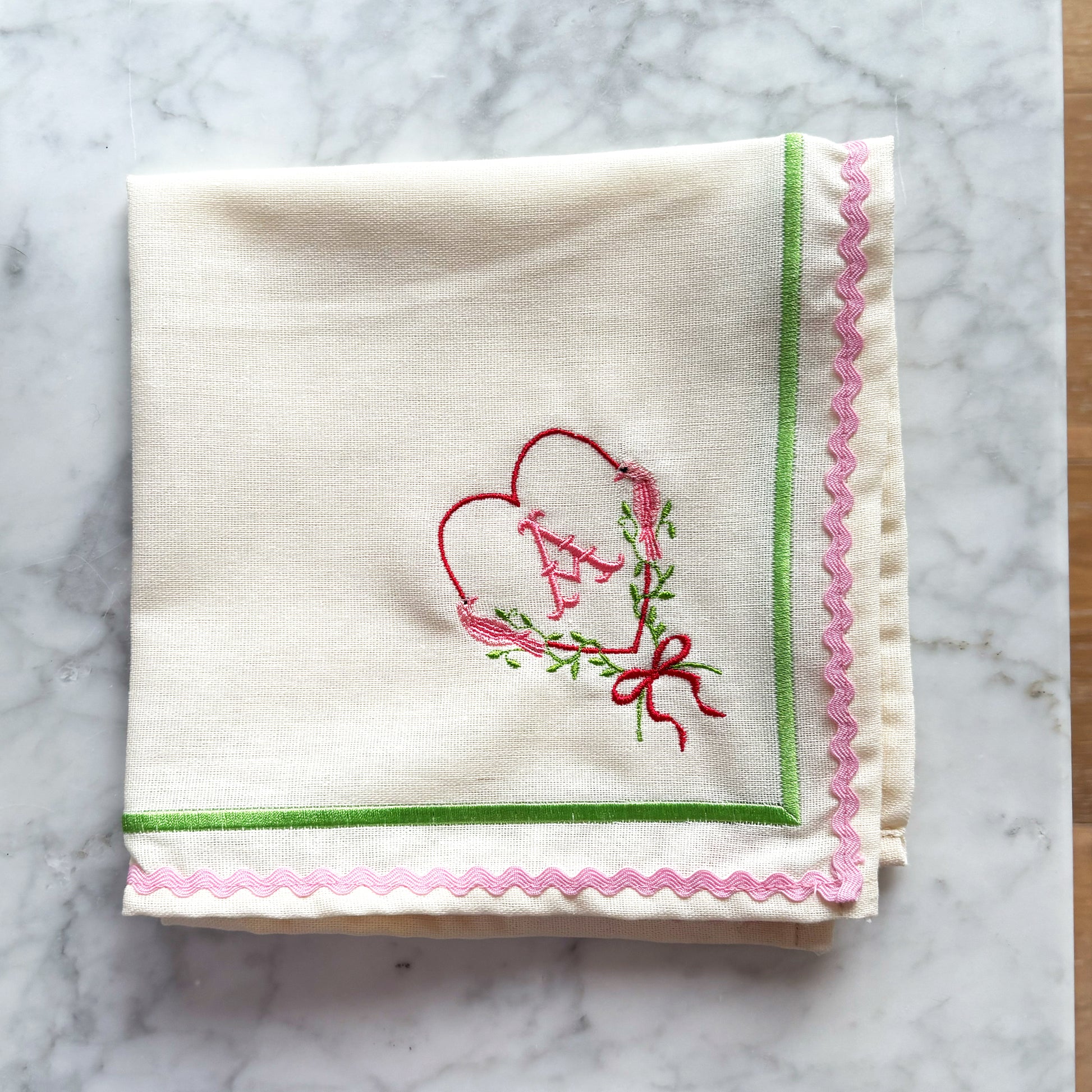 Love Heart With Ribbon Embroidered Napkins Housewarming Linen Napkin, Lobster Linen Napkin, Bespoke Set 2