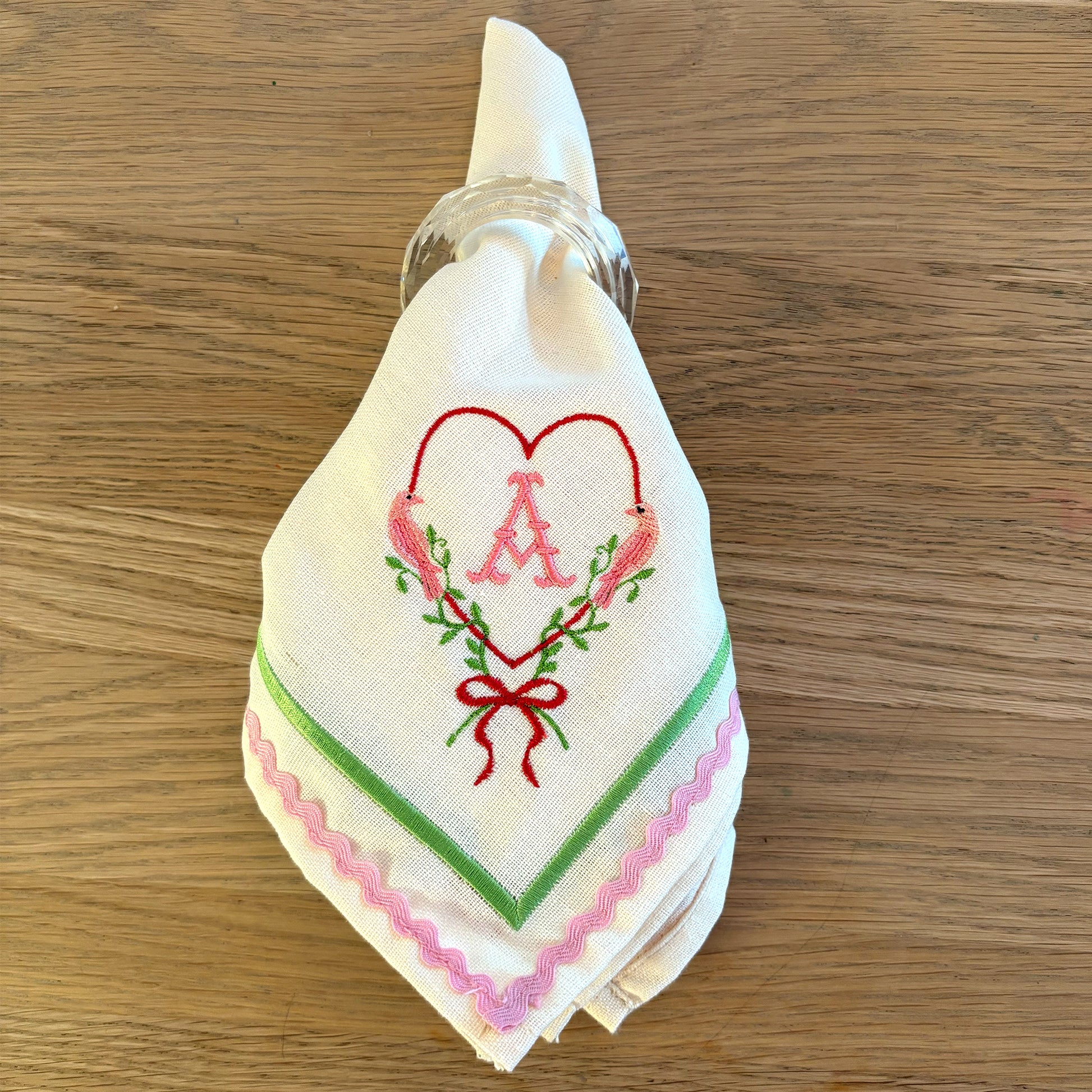 Add a whimsical touch to your special day or house warming celebration with a bespoke set of two. These charming embroidered linen napkins are the perfect finishing touch for your wedding tables, dinner parties or Valentines day. Plus, we've got you covered with many more colour options available - just get in touch!