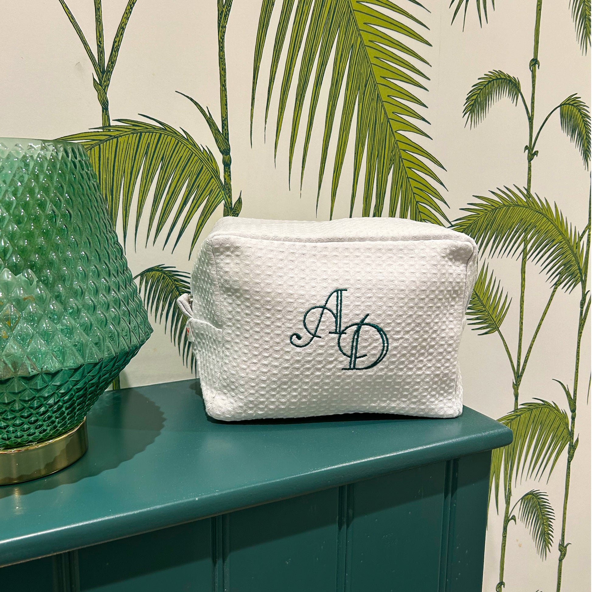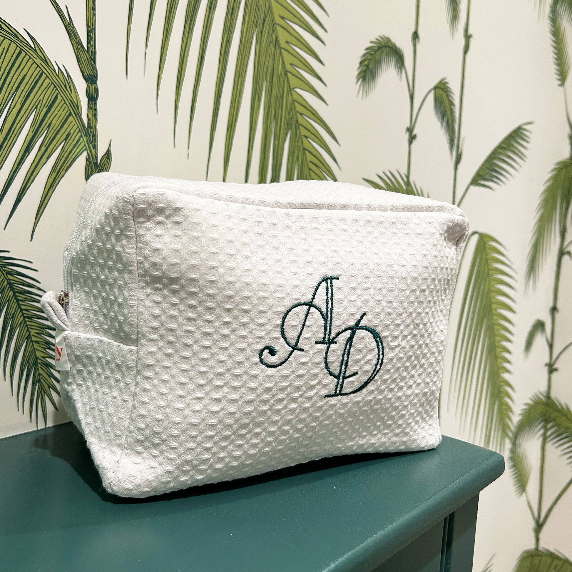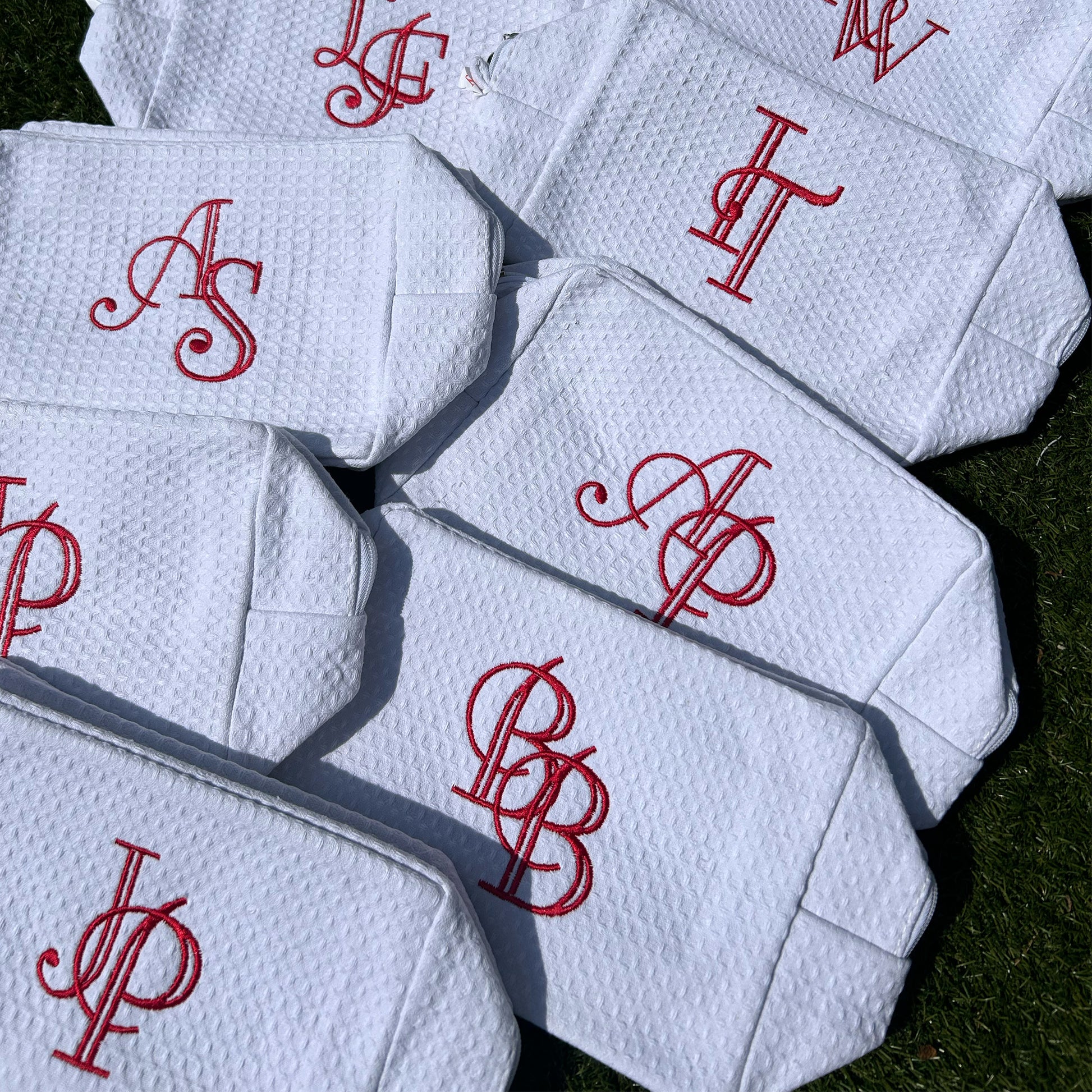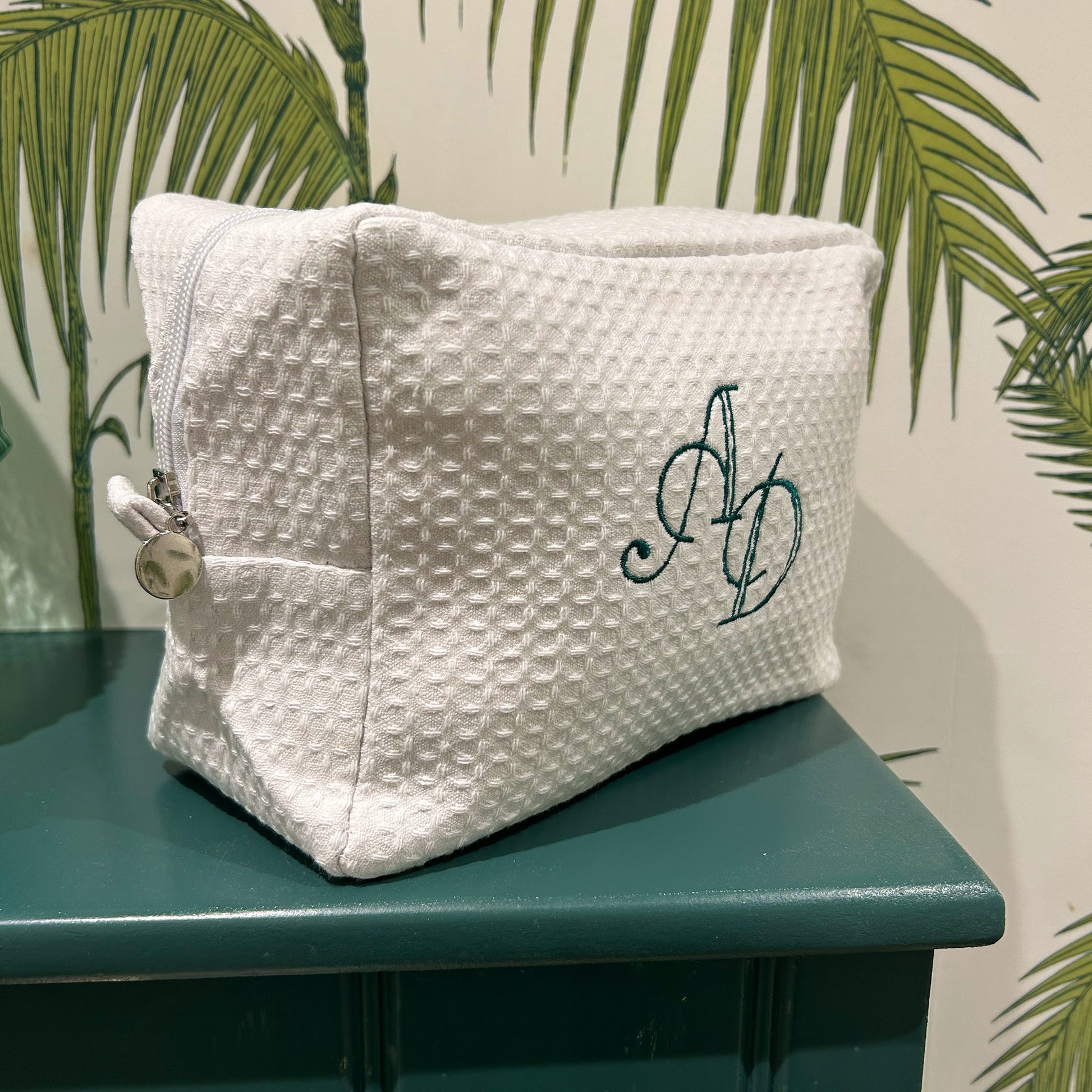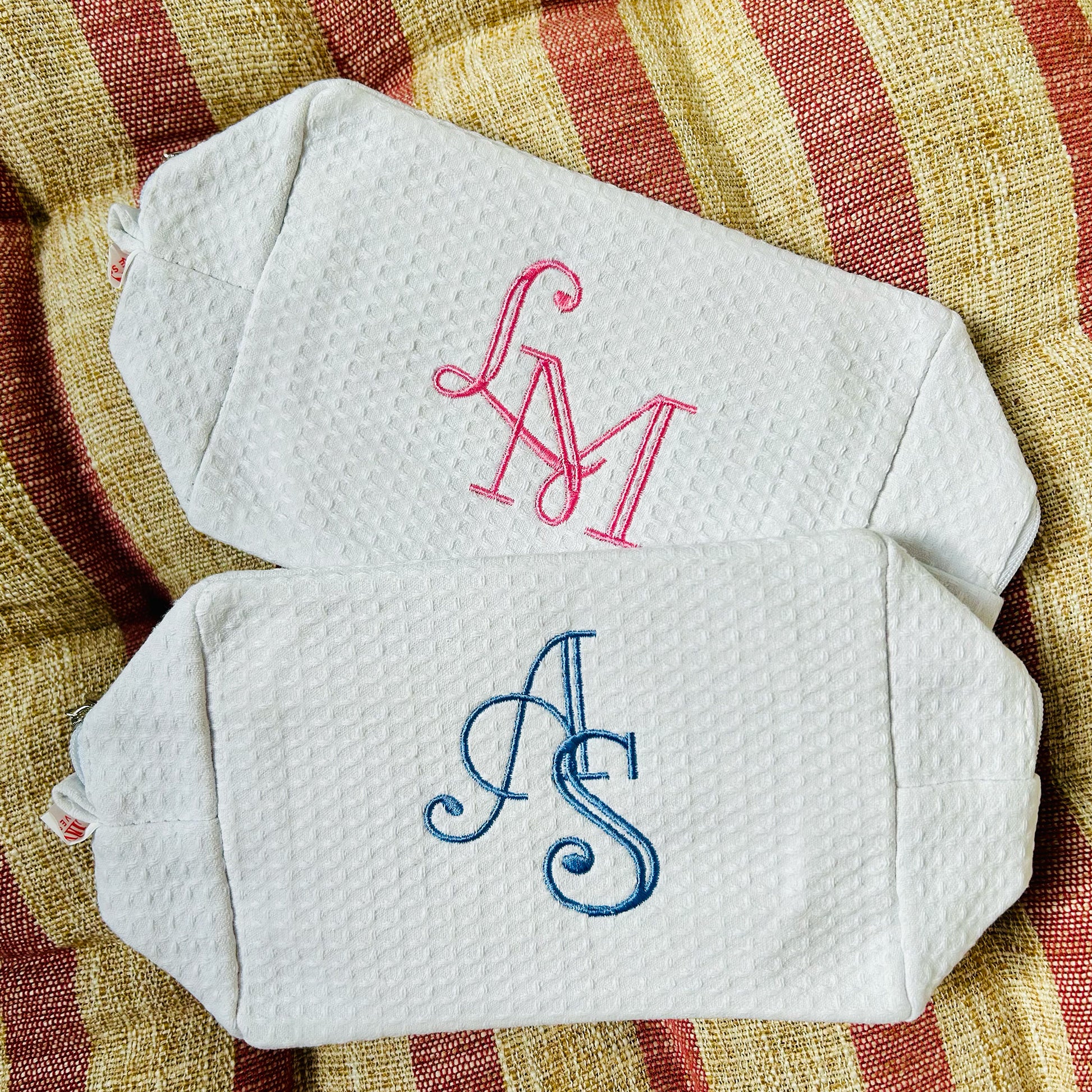 Monogramed White Waffle Weave make up bag