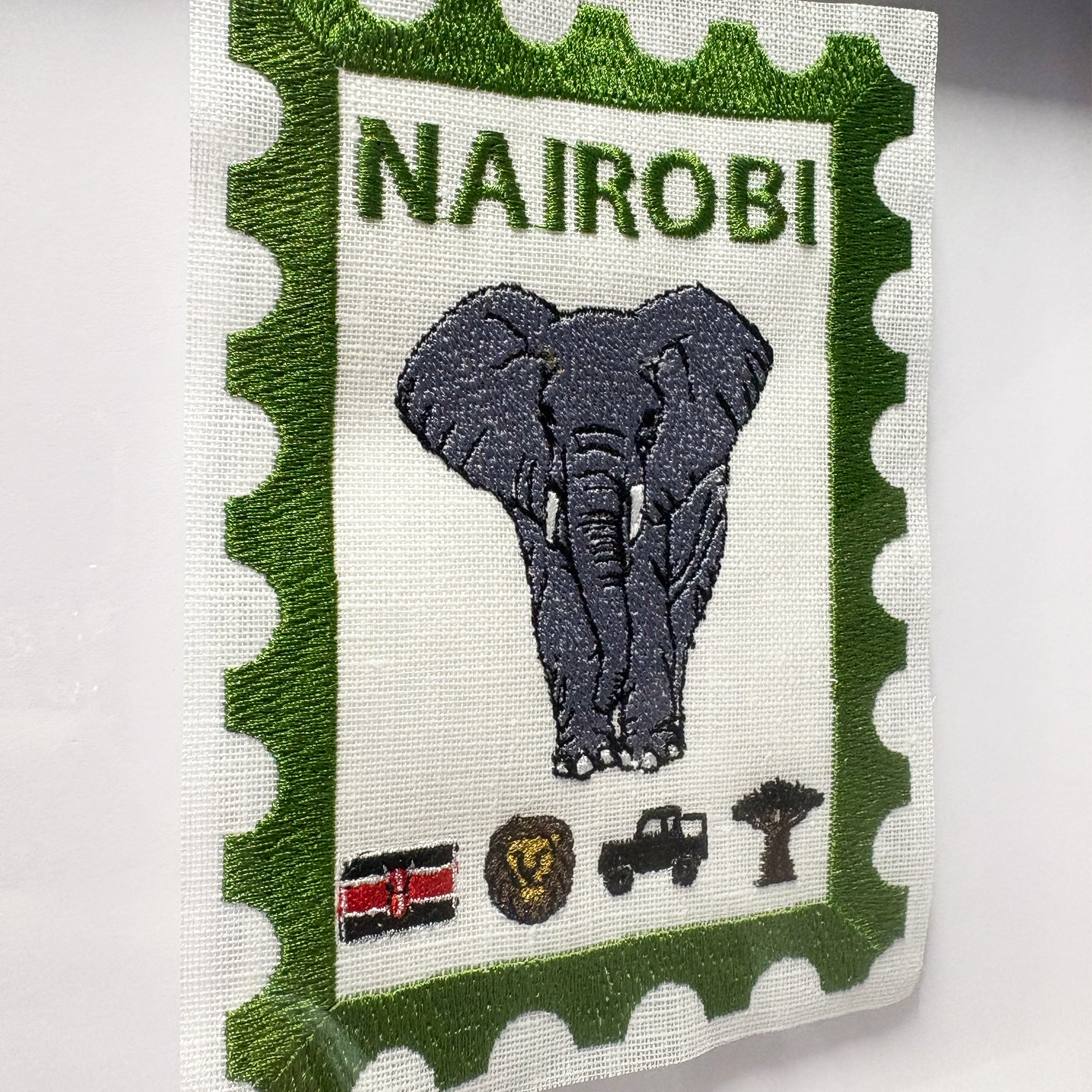 I wanted to create a range of unique embroidered stamps from all over the world, inspired by one of my favourite places or some of your favourite places that you have told me about; these are bright and fun with a playful twist. We stitch all of these in our London studio and use beautiful floating frames.