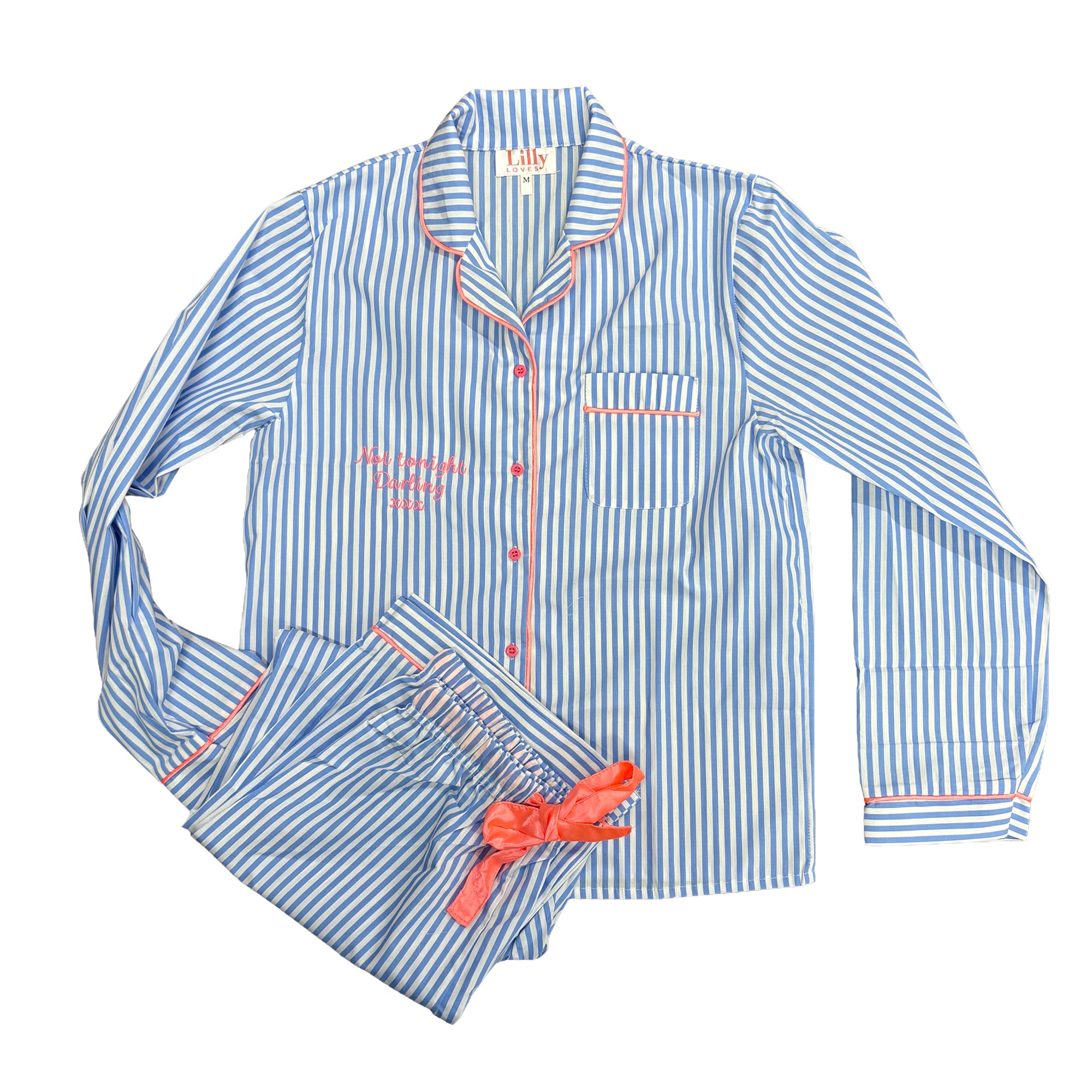 ✔ Classic Striped Design: Long-sleeve top with pocket and button closure, plus coordinating long bottoms.