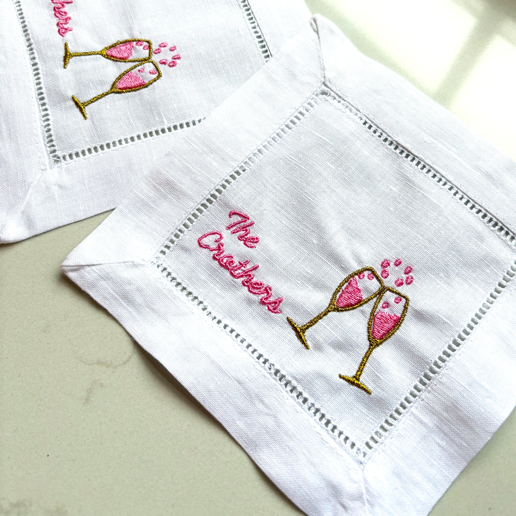 Add a unique and thoughtful touch to your home decor or entertaining essentials with this set of embroidered reusable cocktail napkins! Perfect for adding some personal flair and easy elegance to any occasion. These napkins are made from soft, absorbent cotton with a linen-like texture that is both durable and eco-friendly. At 6x6 inches, they are just the right size for serving appetizers, cleaning up spills, or using as bread plates.