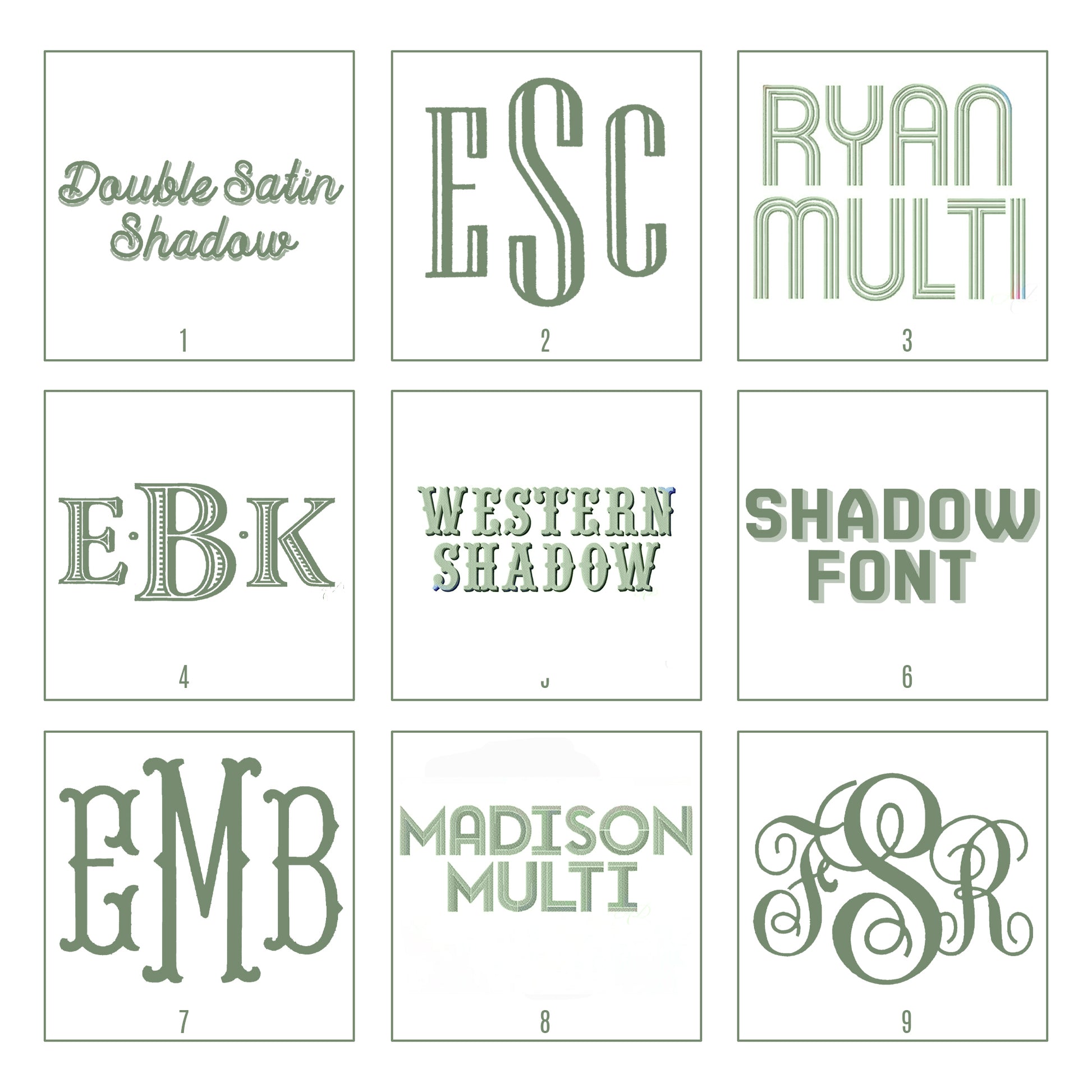 Please see the alphabet chart for the style of font/letter that you have chosen