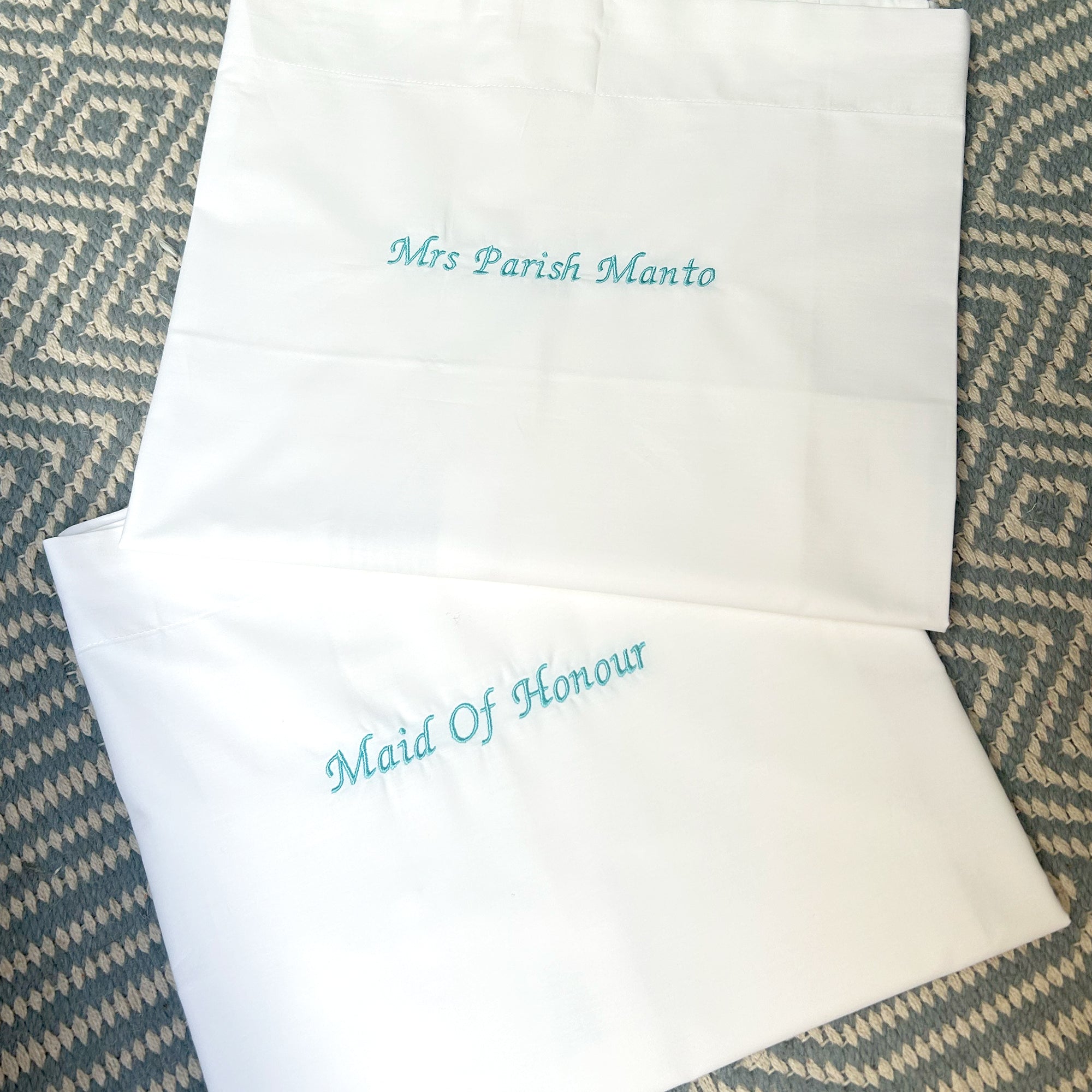 Custom Pair Embroidered Pillowcases, Monogramme, Bridal Shower Gift, Gifting Ideas For Her, Wedding Pouch, Bachelorette Gift