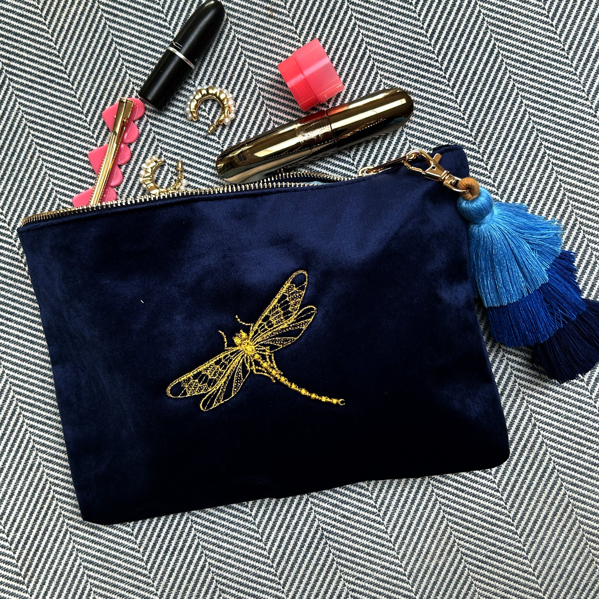 Personalized Dragonfly Initials Velvet Toiletry Bag – Beauty & Travel Gift