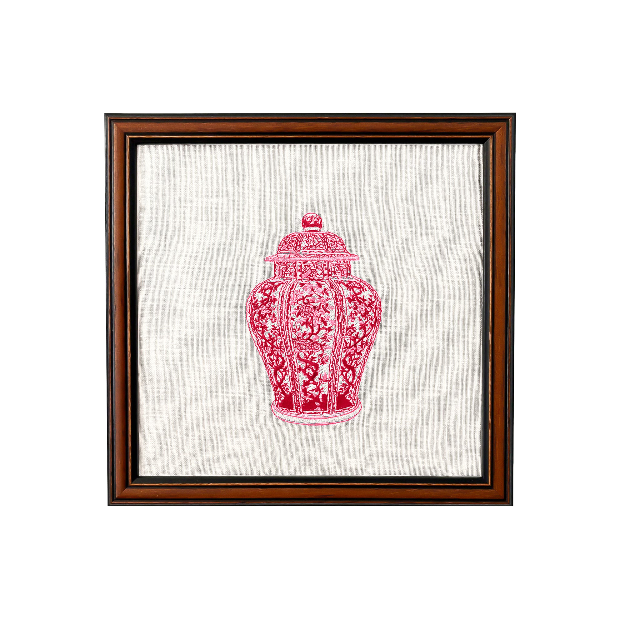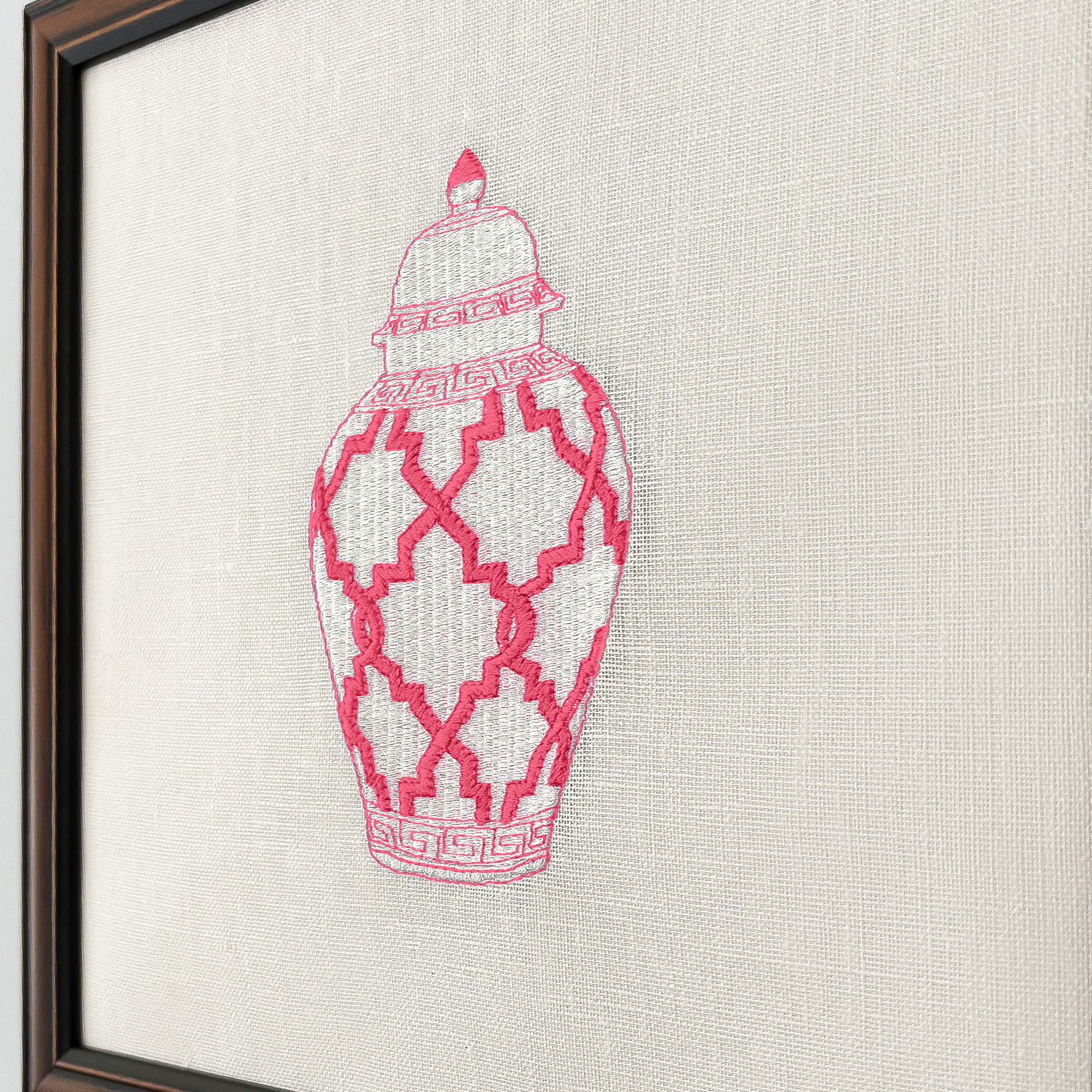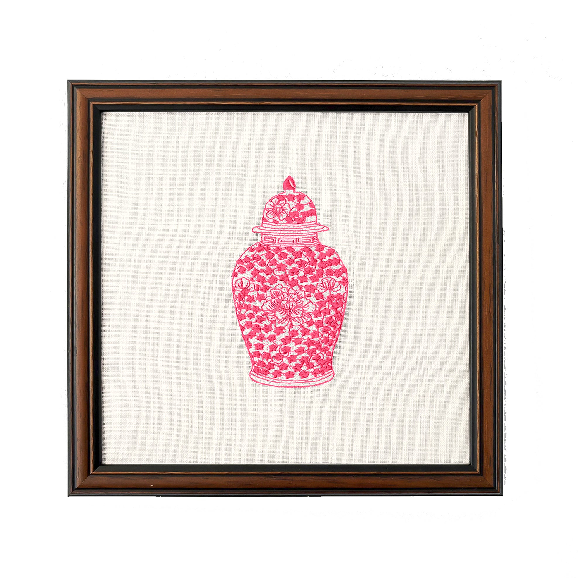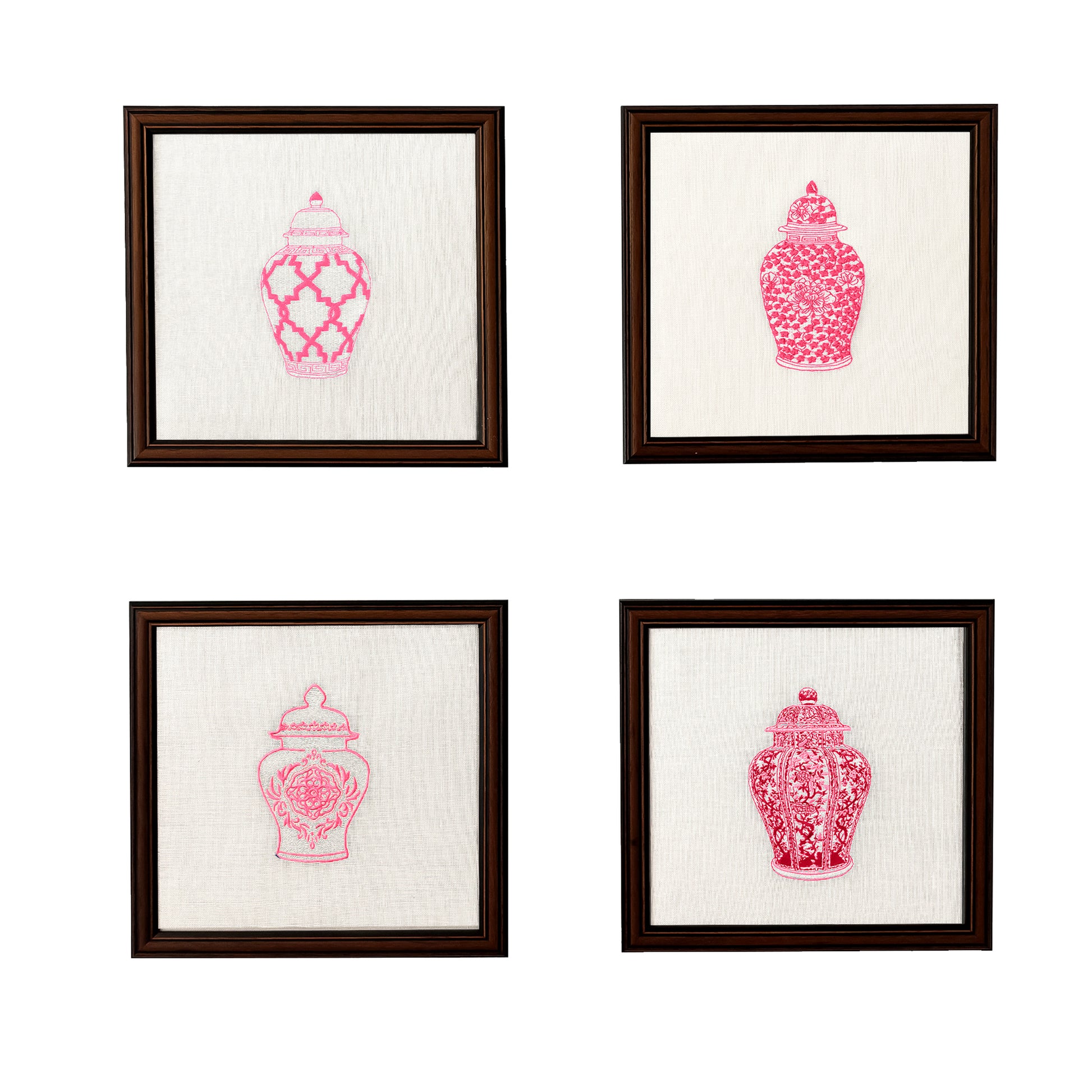 Pink Ginger Jars Set of 4 Embroidered Artwork