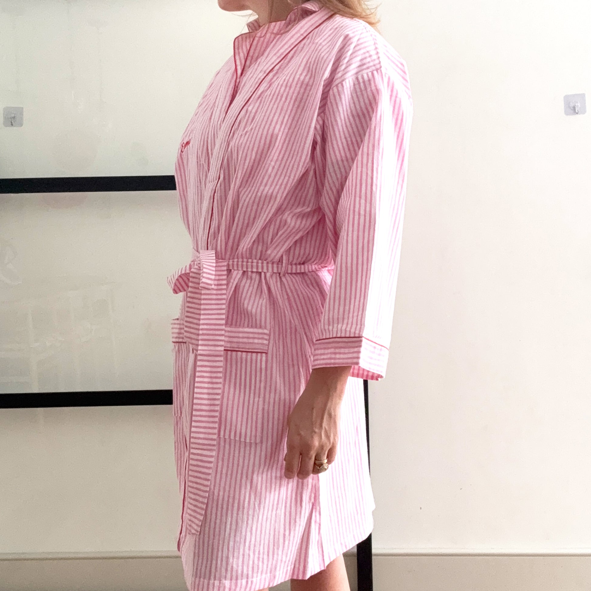 Pink Stripe Kimono Robe