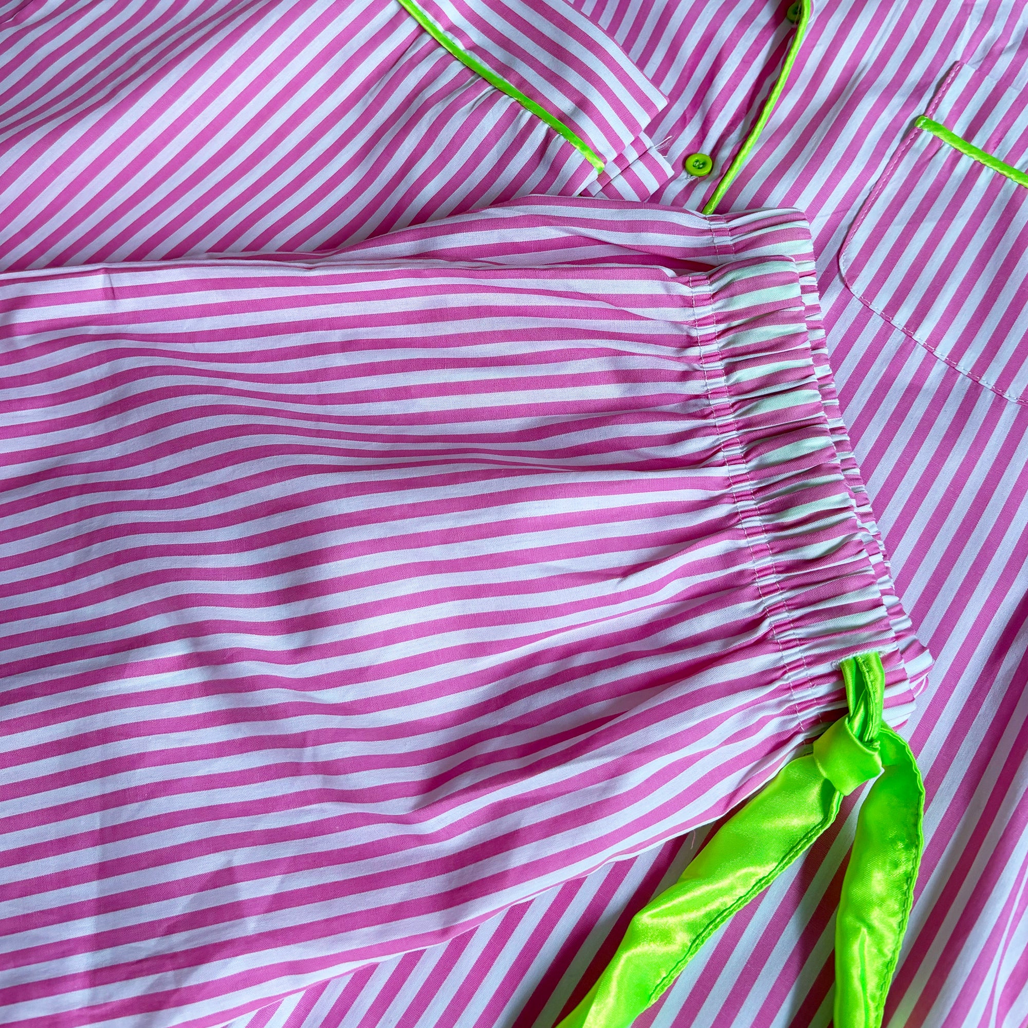 • Bottom: relaxed fit trousers with elastic waistband with neon satin tie.