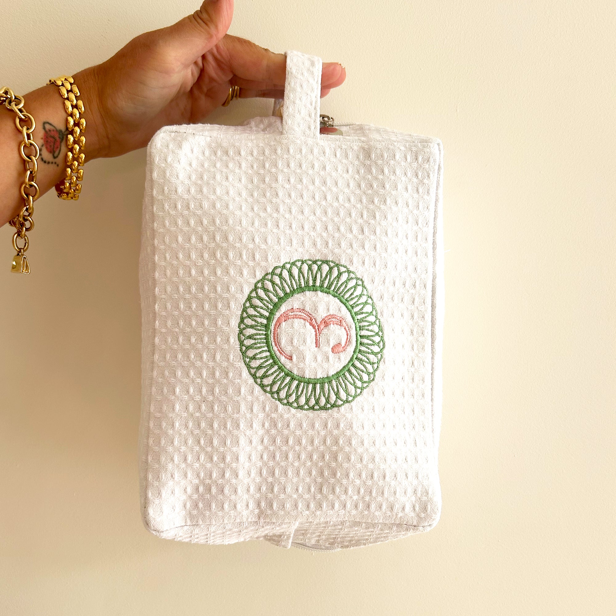 Add a touch of elegance to her daily routine with our Monogrammed Dressing Gown and Cosmetic Bags! Perfect for bridesmaids or as a thoughtful bridal shower gift, each bag is beautifully embroidered with her initials for a personalized touch. These versatile makeup cases are ideal for storing beauty essentials or as stylish toiletry bags for travel. Crafted with quilted fabric and attention to detail, they make for a chic and practical gift that she'll love. Make her special day even more memorable with our Monogram Quilted Cosmetic Bags!