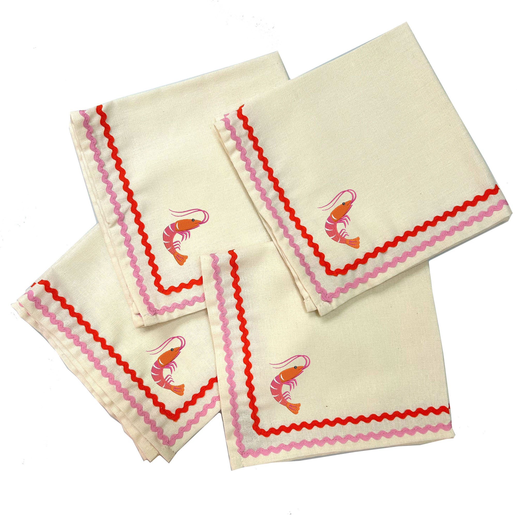 Prawn Toast Embroidered Napkins | Pink | Set of 2