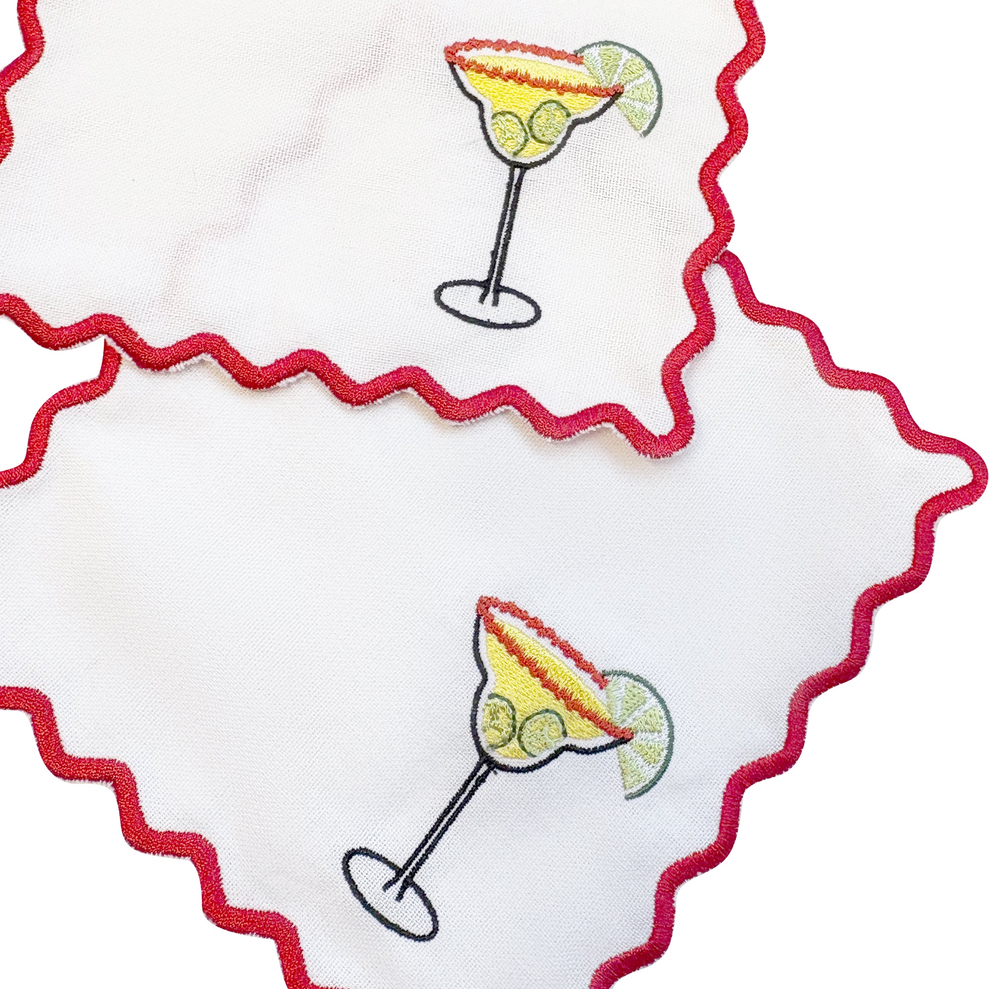 Add a spicy and stylish touch to any event with these embroidered linen cocktail napkins! Made from soft, absorbent cotton with a durable linen-like texture, these 6x6 inch napkins are perfect for serving appetizers or cleaning up spills. Eco-friendly and full of personality!