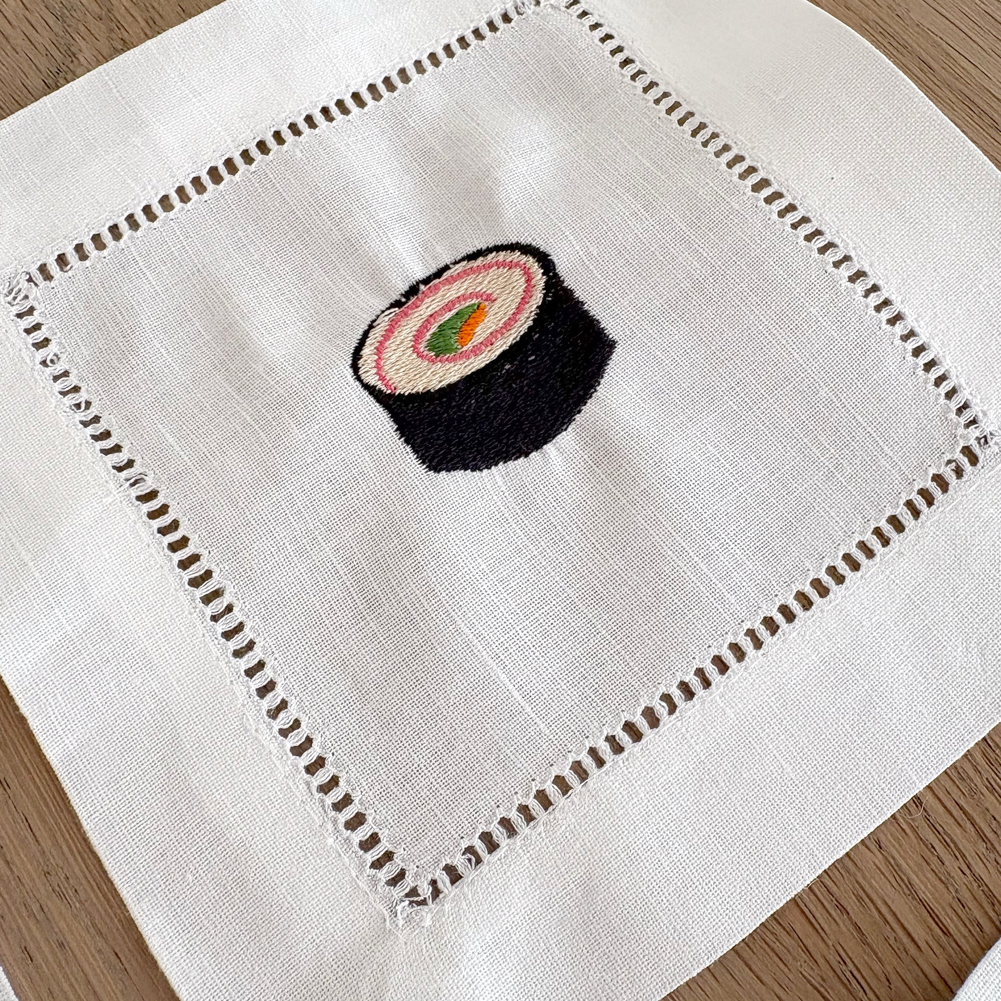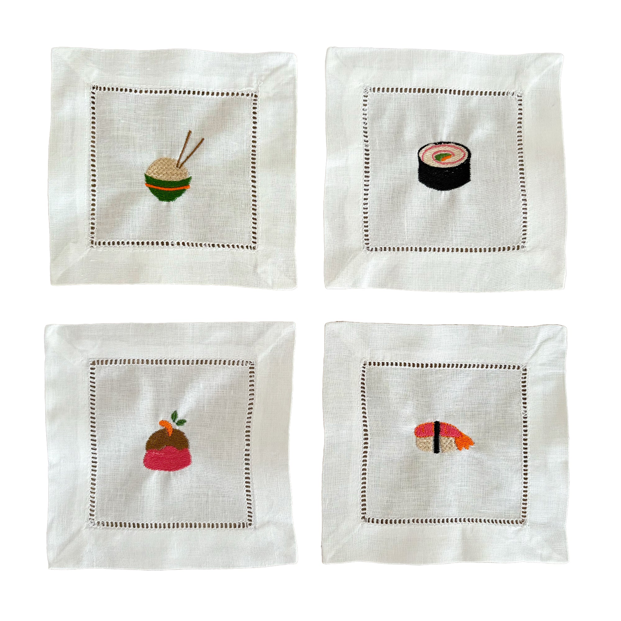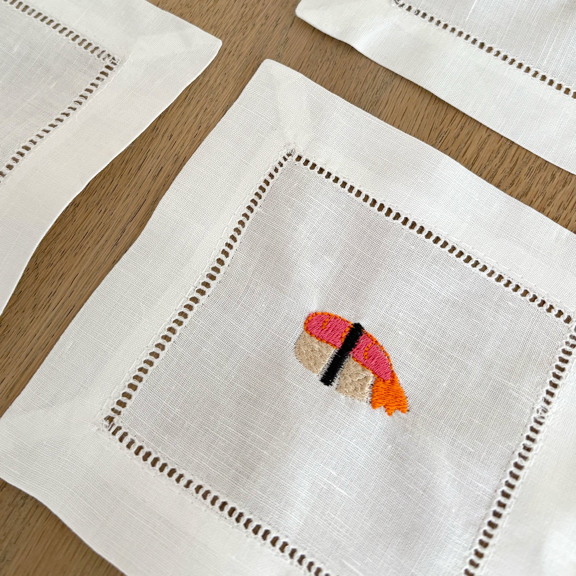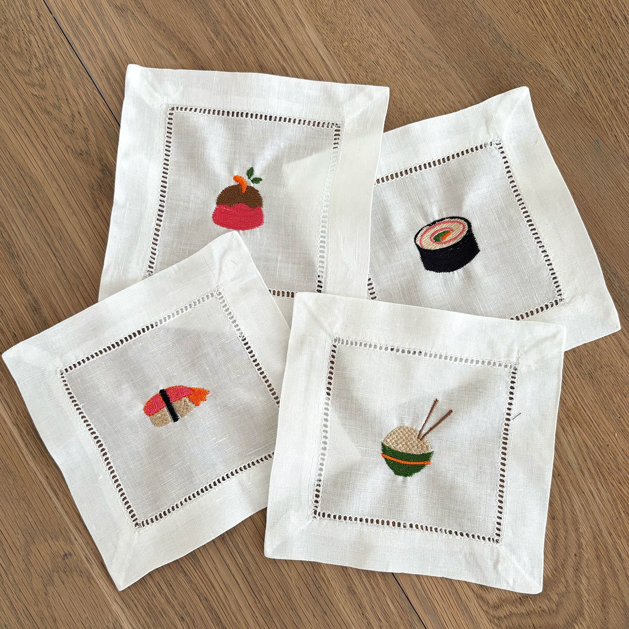 Embroidered Reusable Cocktail Napkin Set, Sushi inspired