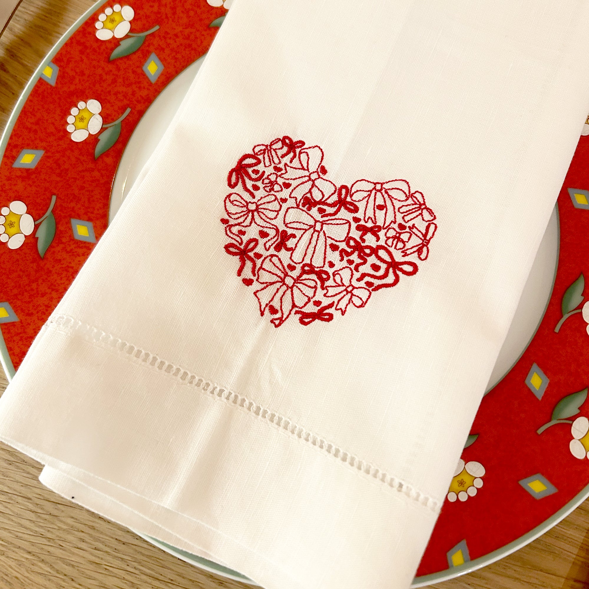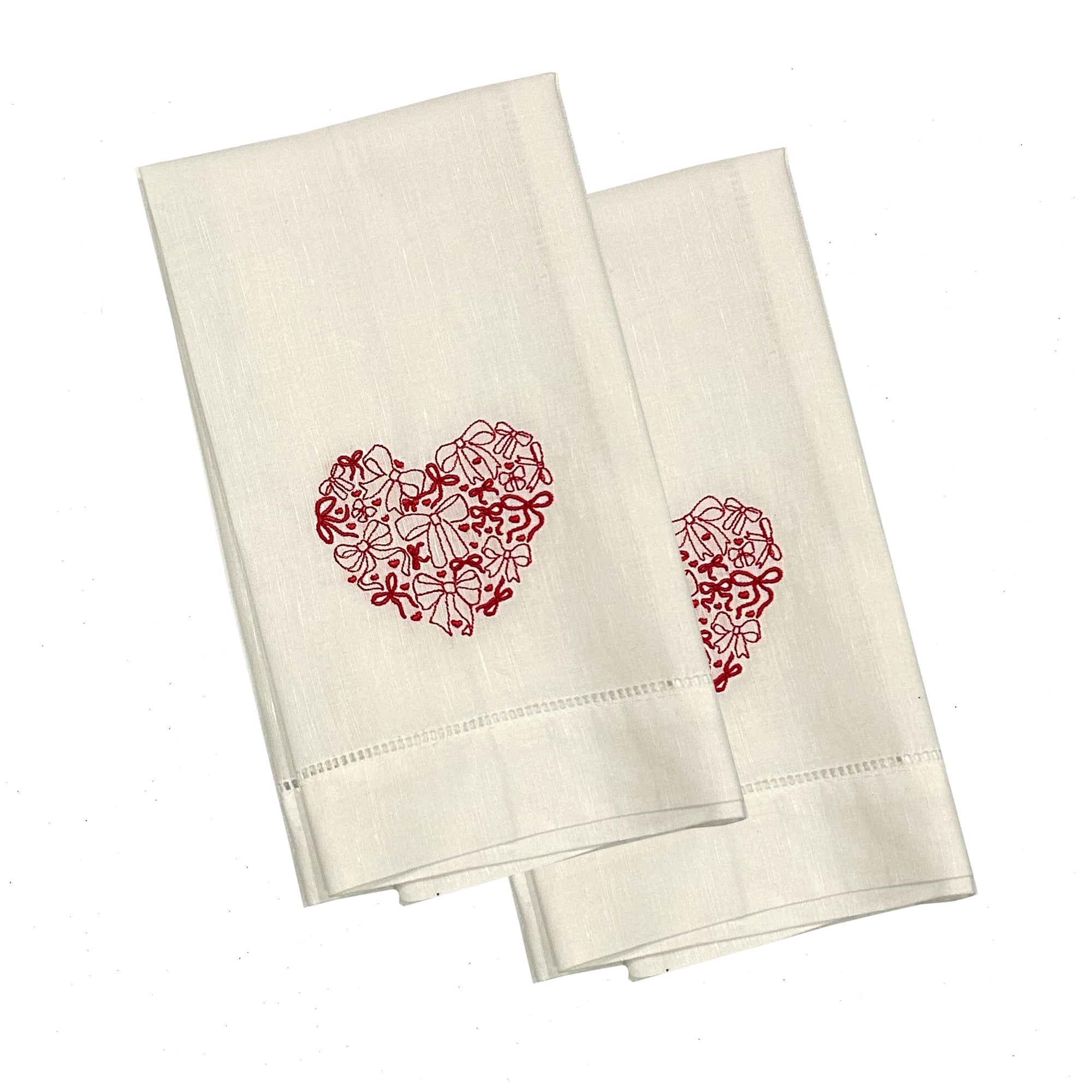 Valentine Linen Napkin Set | Heart & Bows Design, Bespoke Embroidery